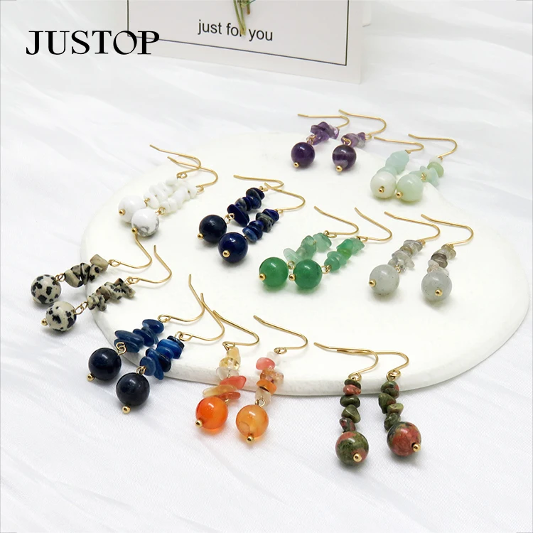 Wholesale Natural Crystal Stone Quartz Earrings Handmade Women Fashion Gemstone Jewelry Hook Tassel Earring