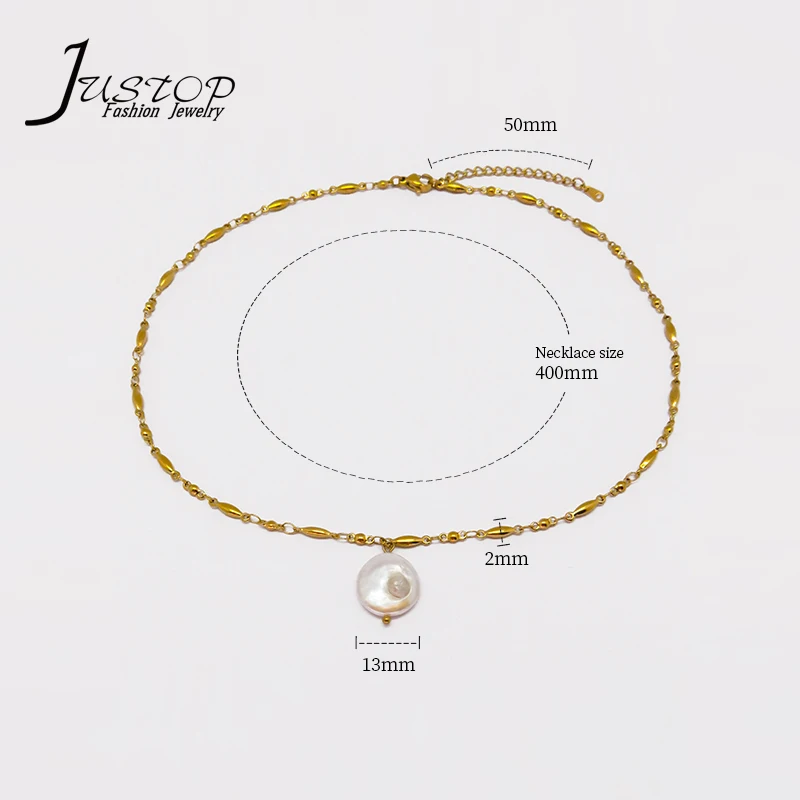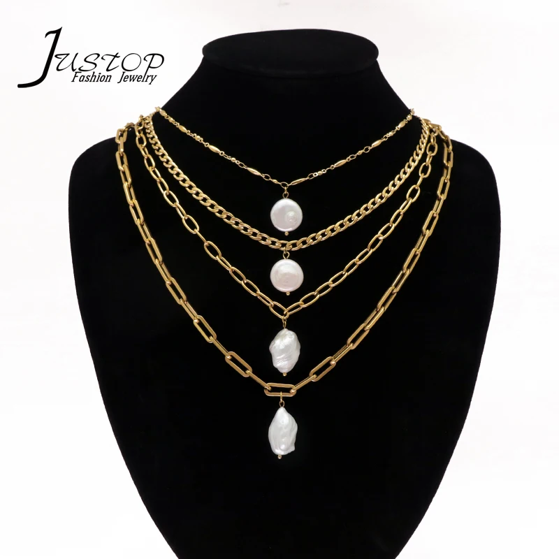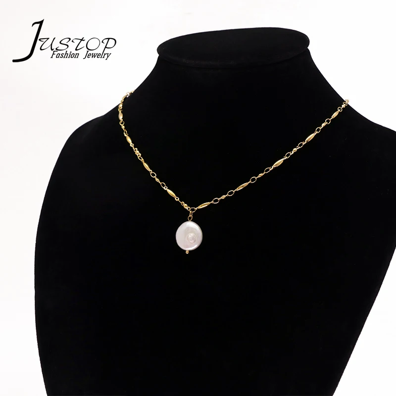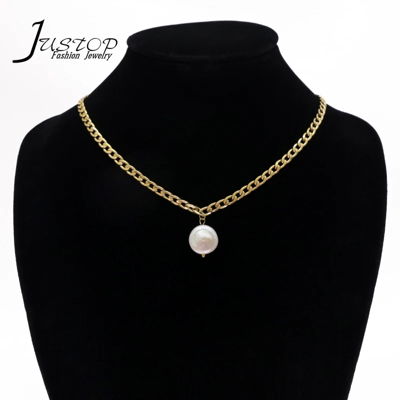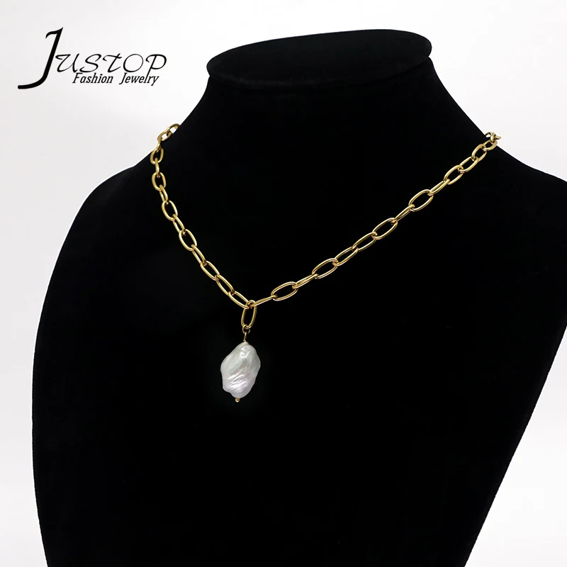 Vintage Link Chain Stainless Steel Women Baroque Pearl Choker Jewelry Shell Heart Charm Pendant Necklace