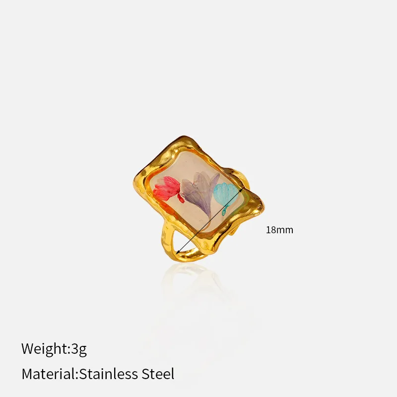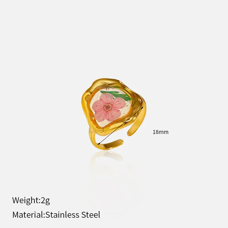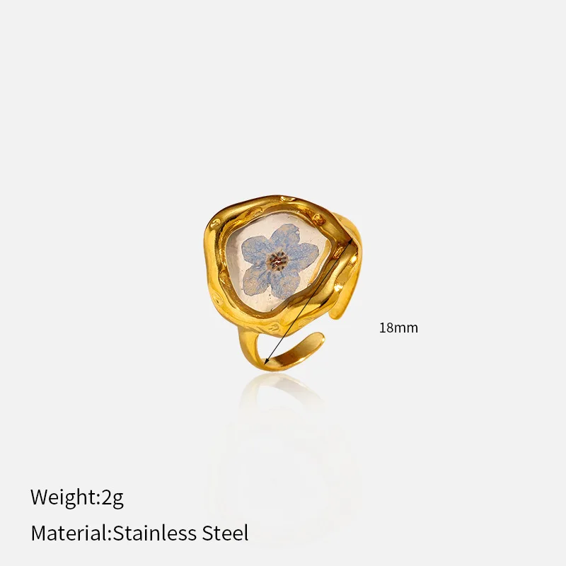MW Minimalist Polygonal Women's Stainless Steel Dry Flower Opening Ring 18k Gold Plated Trendy Statement Jewelry for Weddings