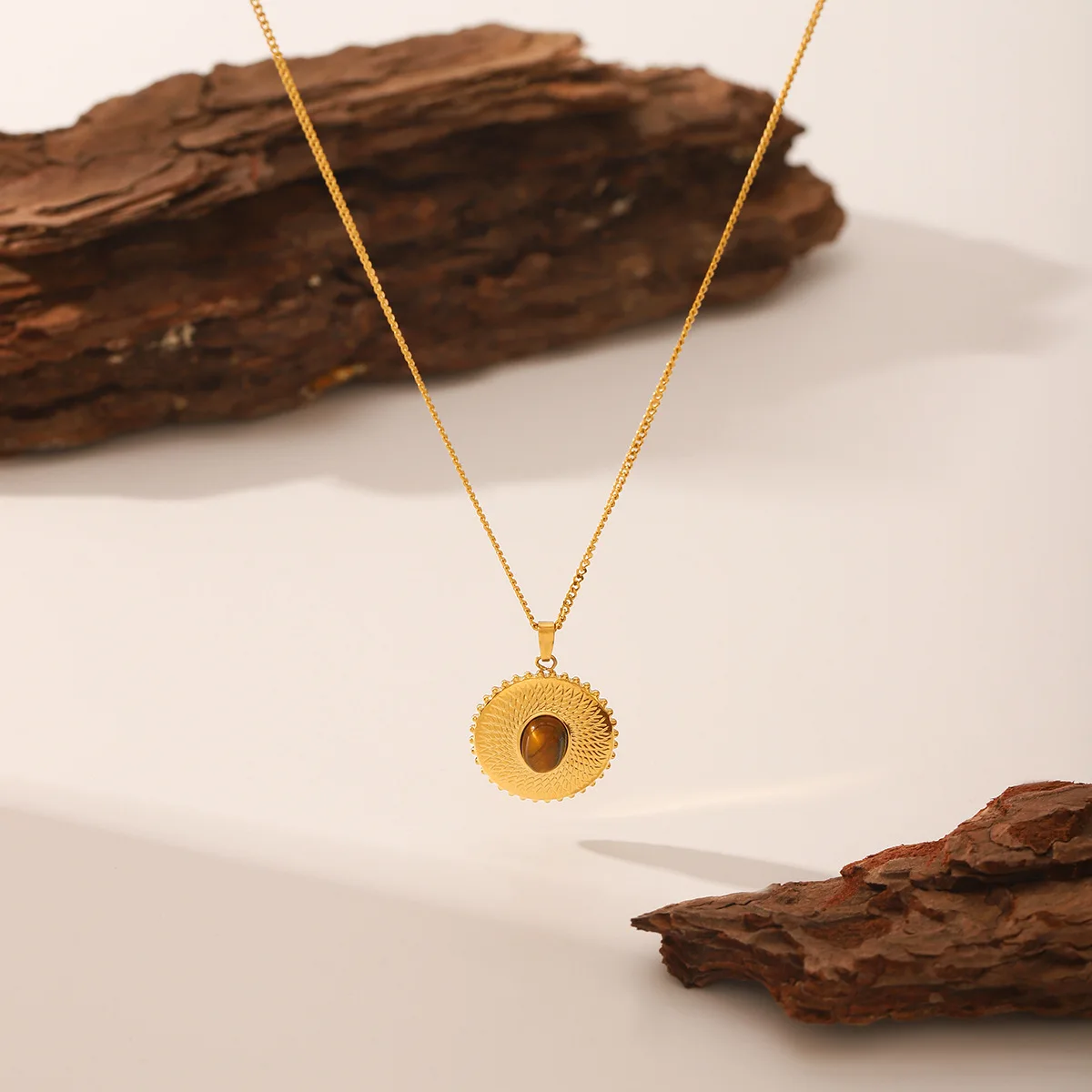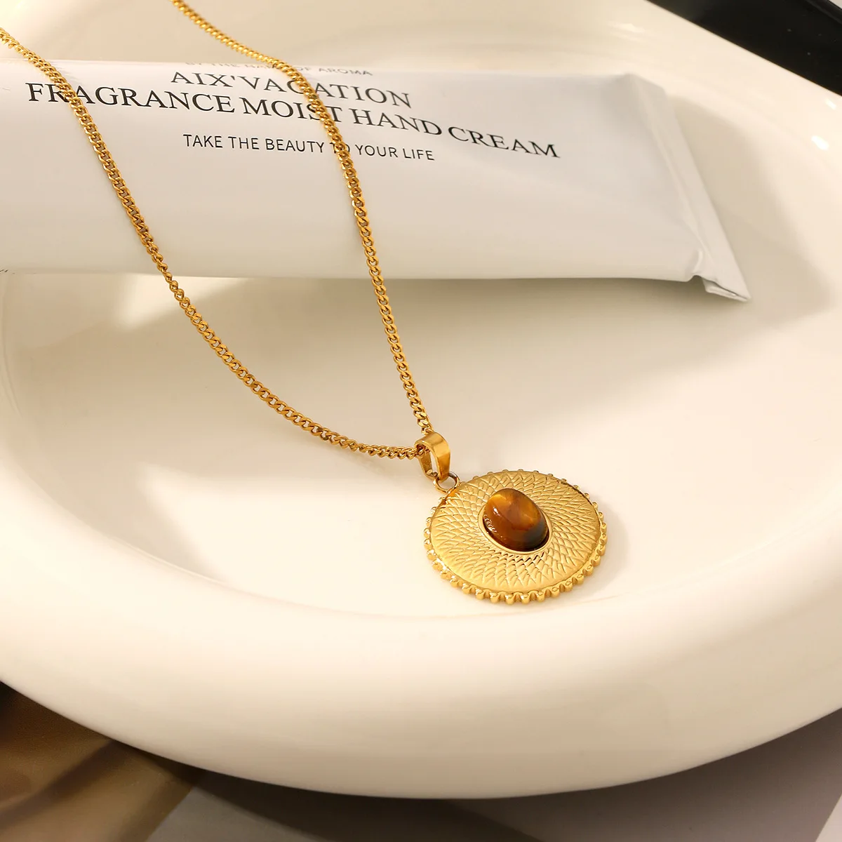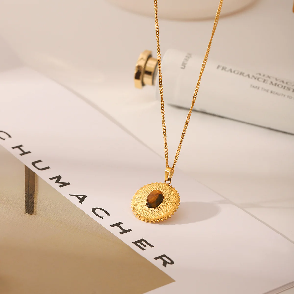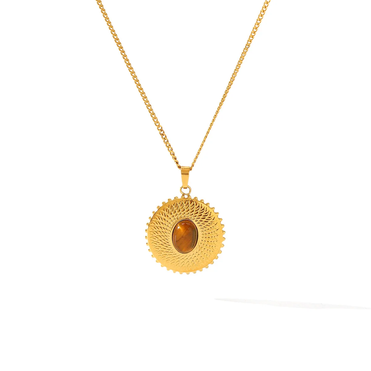 MW 2026 New Arrival Trendy Vintage 18K Gold Stainless Steel Pendant Necklace Link Waterproof Circle Pattern for Women's Gift