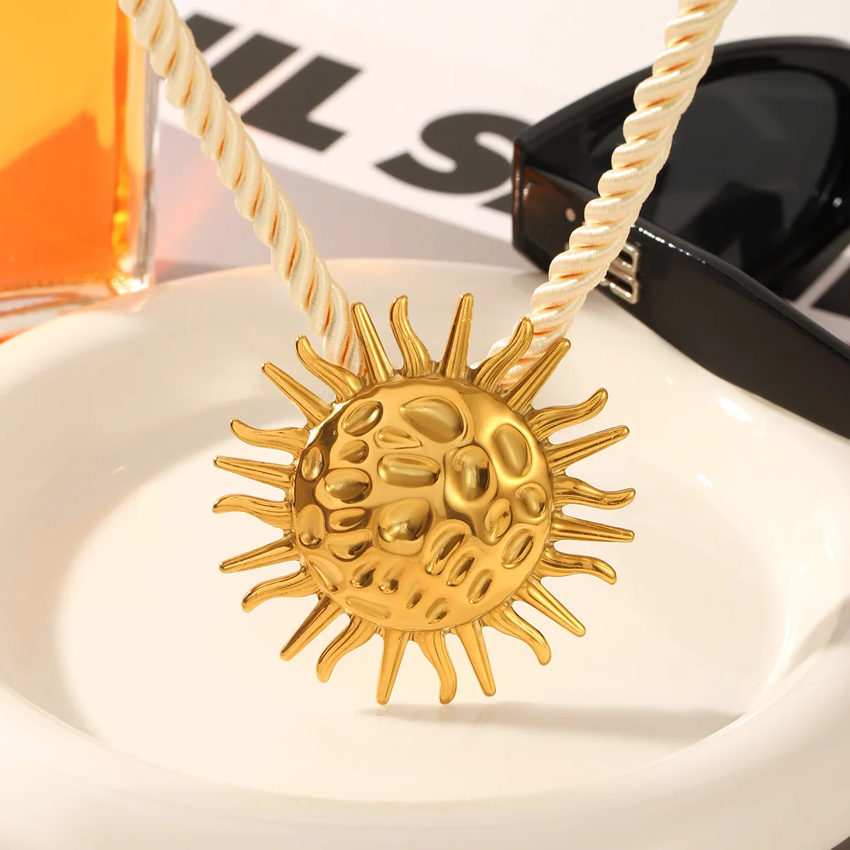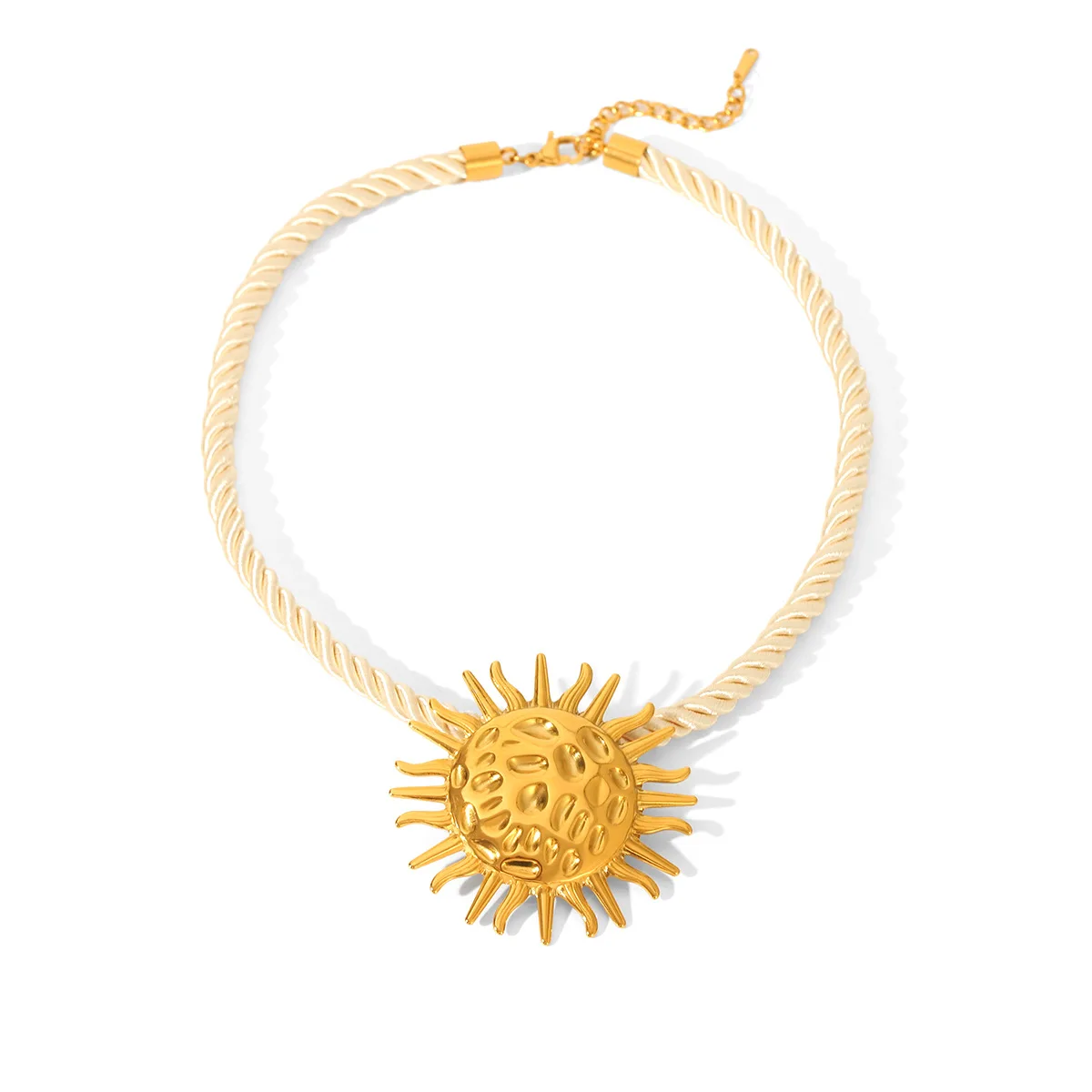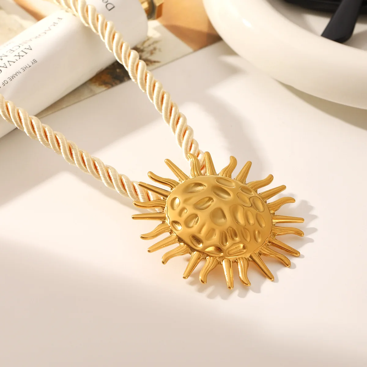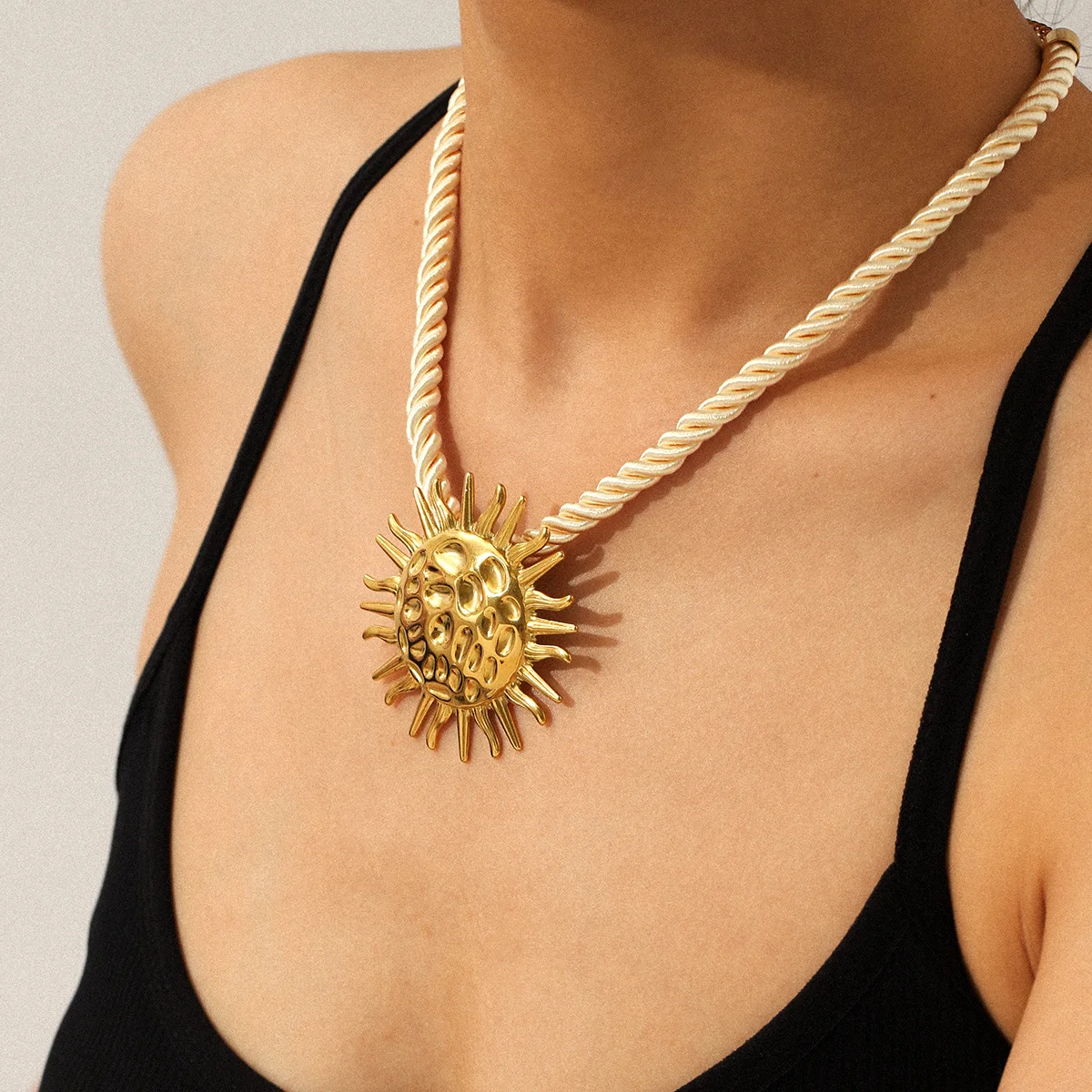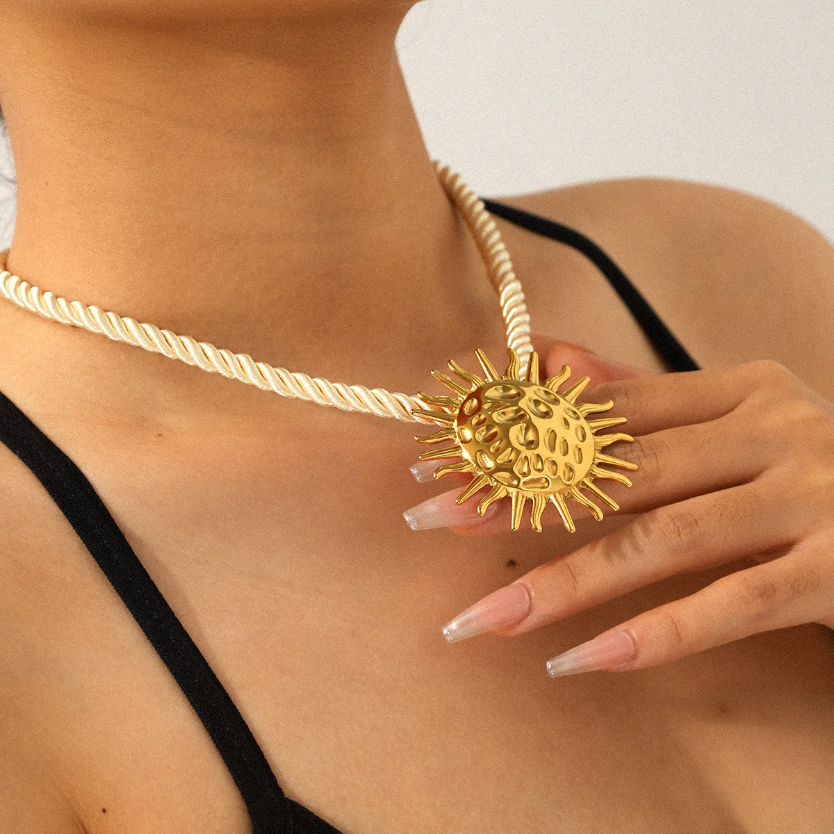 MW 2026 Fashion 18k Gold Plated Stainless Steel Necklace for Women Woven Rope Chain Gold Plated Sun Pendant Necklace