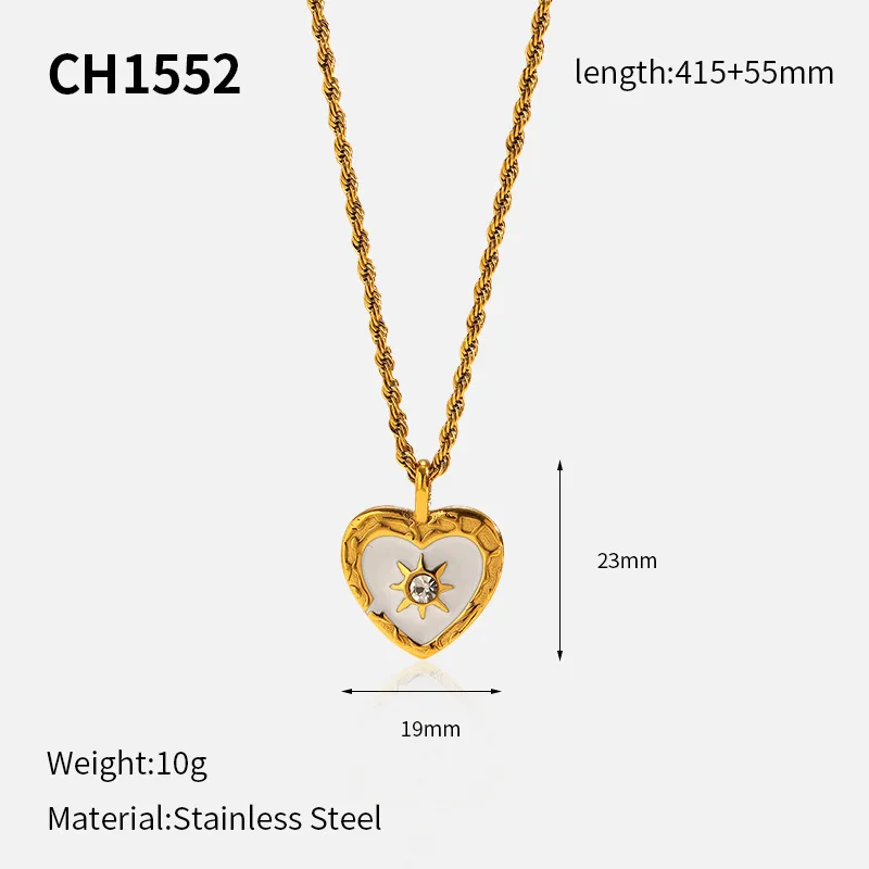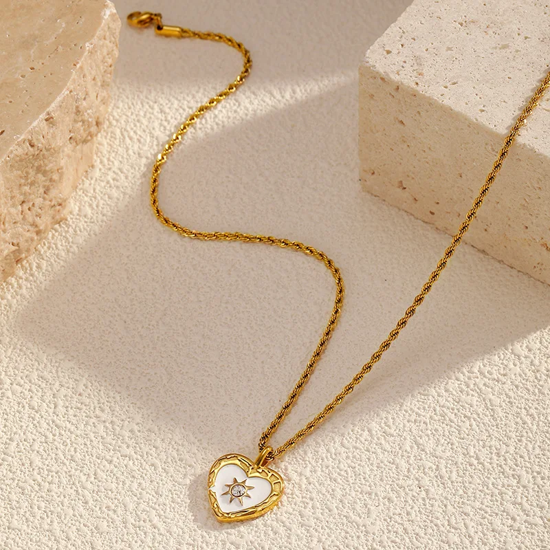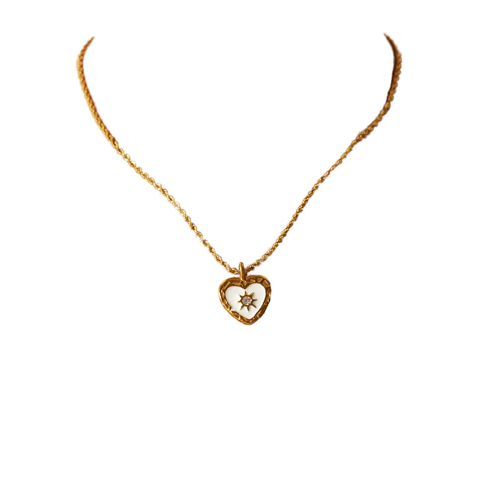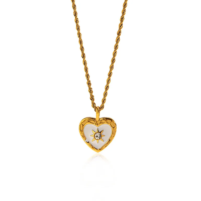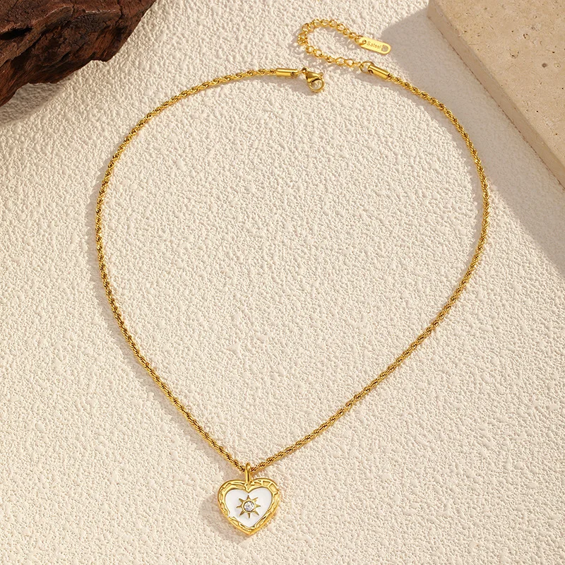 MW Trendy Retro Twist Chain Heart-shaped Necklace for Women Stainless Steel Transparent Zircon Heart Pendant Link Chain Jewelry