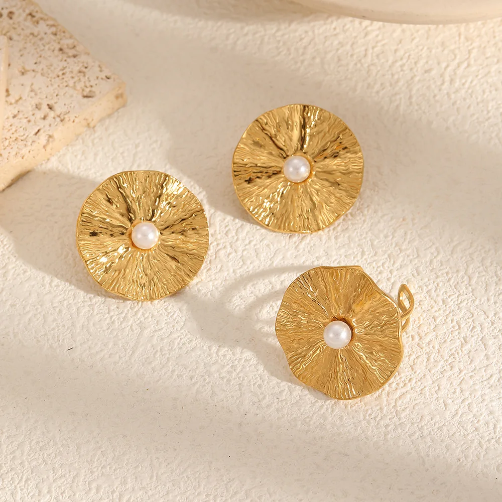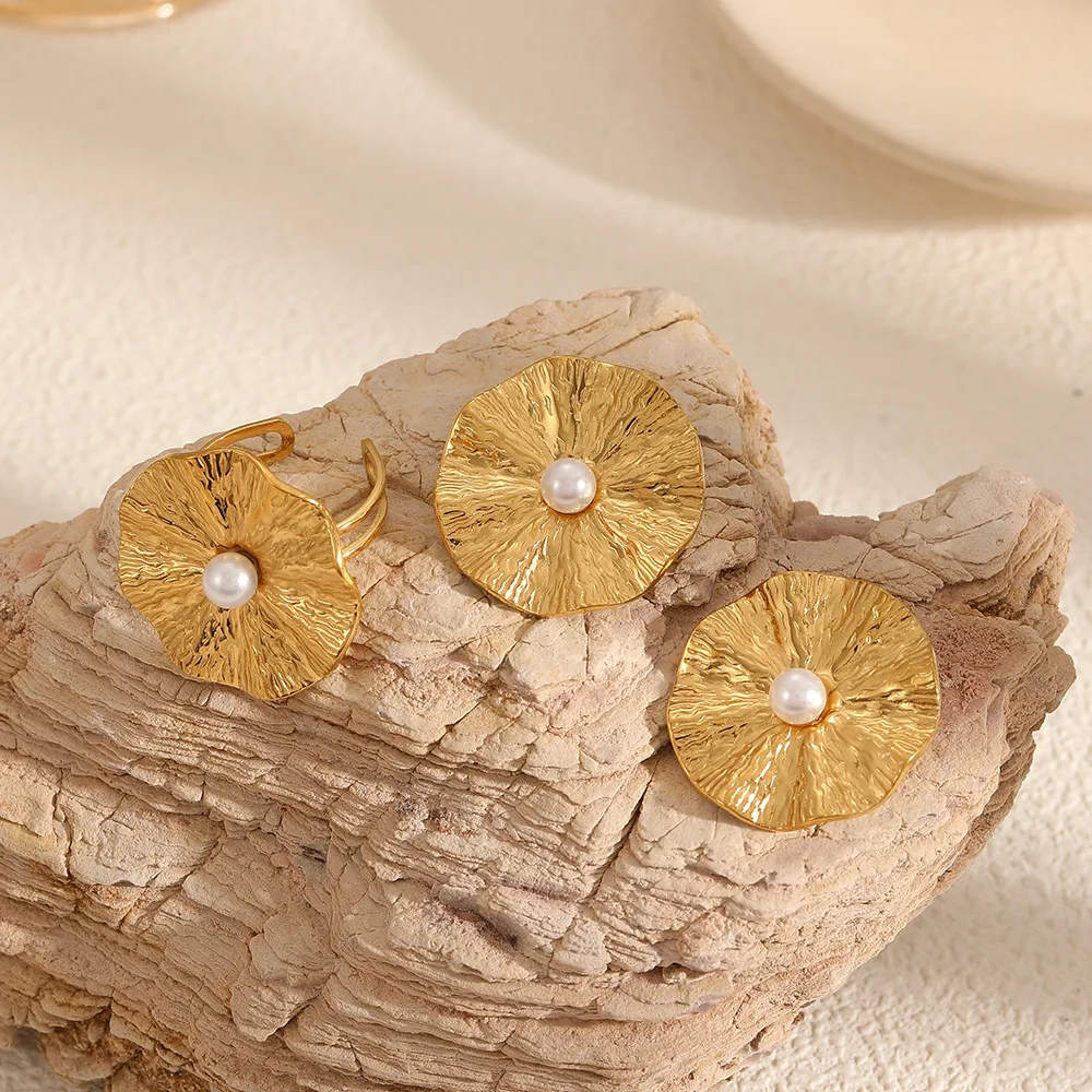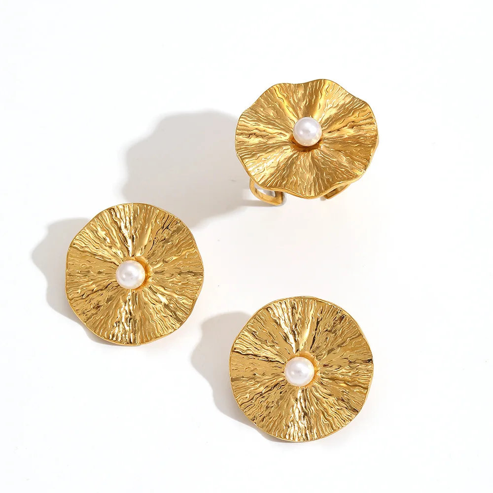 MW High-End Design Dainty Atmospheric Flower Stud Earrings Trendy French Non-Fade Wholesale Pearl Rings Women's Wrinkle Stud