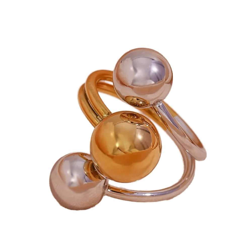 MW Adjustable Stainless Steel Index Finger Ring Exaggerated Three-Ball 18K Gold Plated Jewelry Wedding Engagement Party Jewelry
