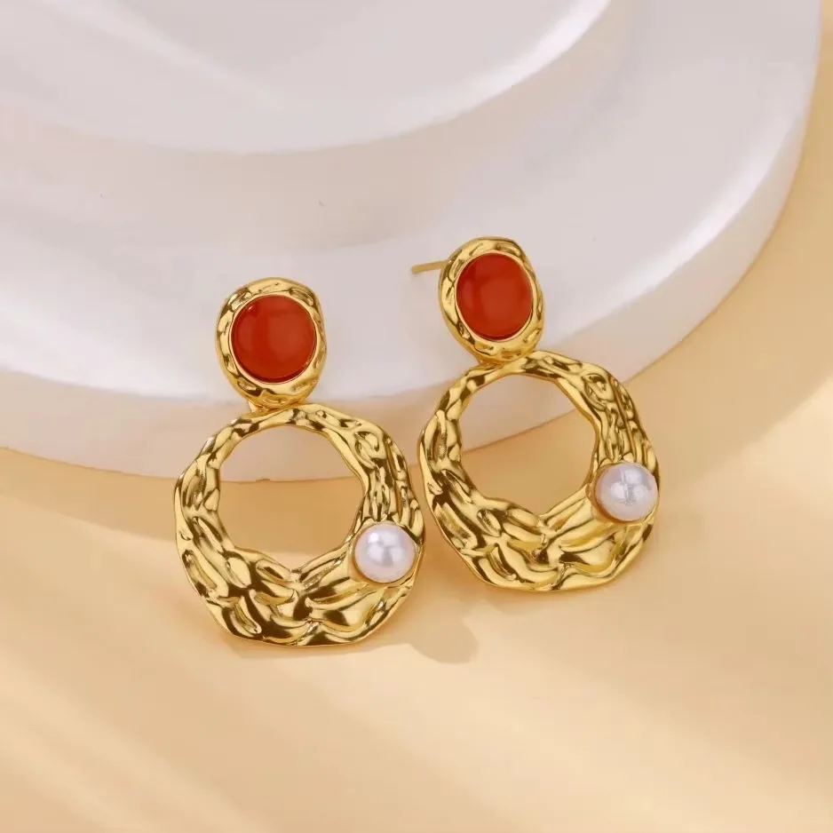 MW Vintage Style Stud Earrings for Women Coffee Color Resin with Geometric Amber Temperamental Design Stud Earrings Jewelry
