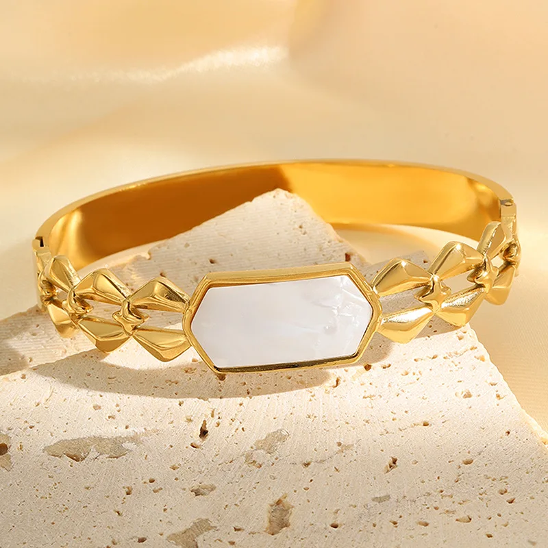 MW Fashion Health Women's Trendy Gold Plated Stainless Steel Bangles for Daily Use and Party Occasions Zircon