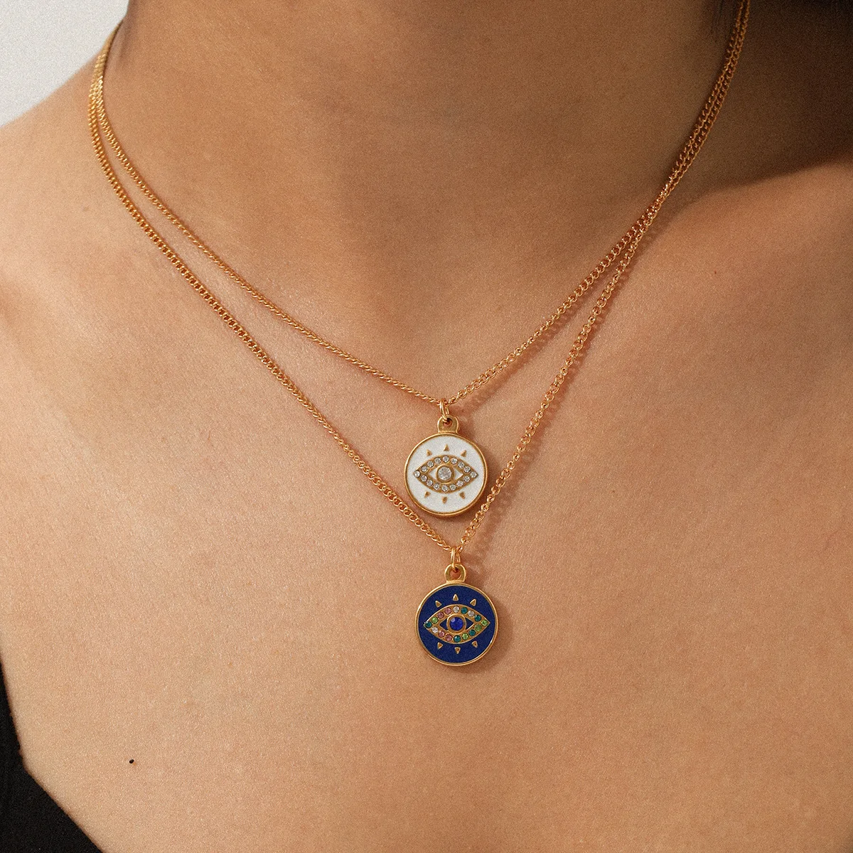 MW New Waterproof 18K Gold PVD Plated Stainless Steel with Zircon Drip Oil Devil Eye Pendant Necklace for Women