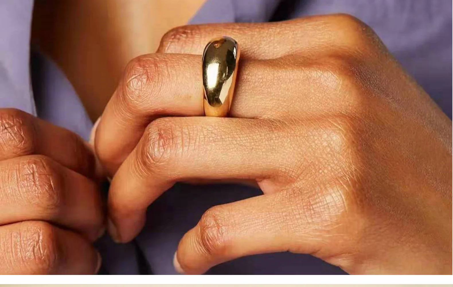 MW Women's Minimalist, Stylish and Trendy 18K Gold-Plated Stainless Steel Wedding Ring - Curved, Smooth, Round Statement Ring