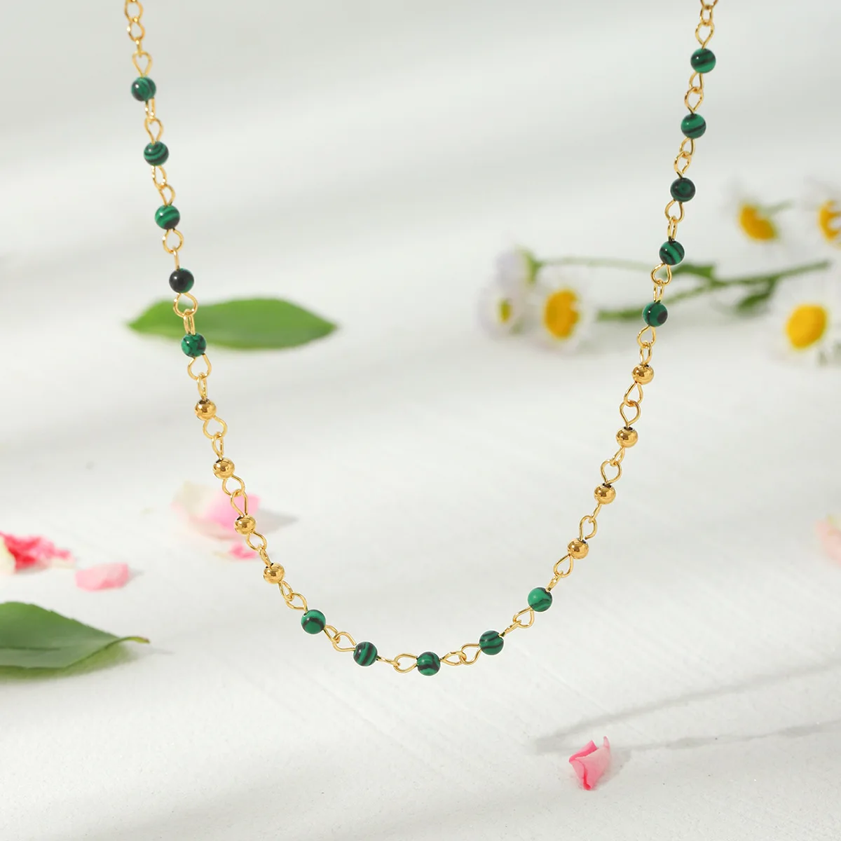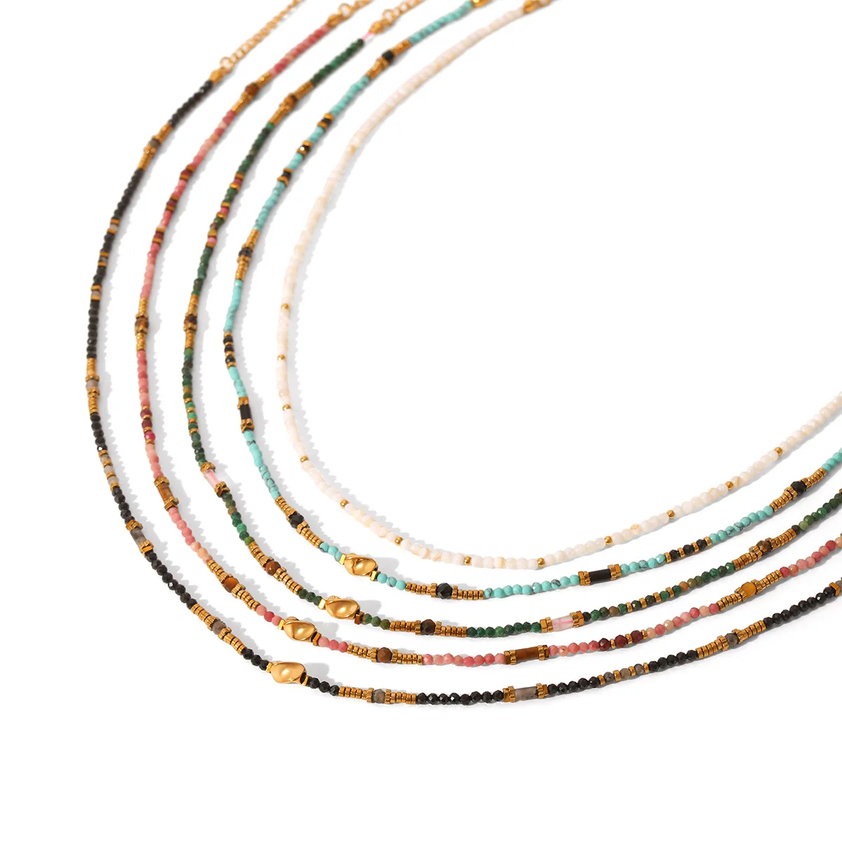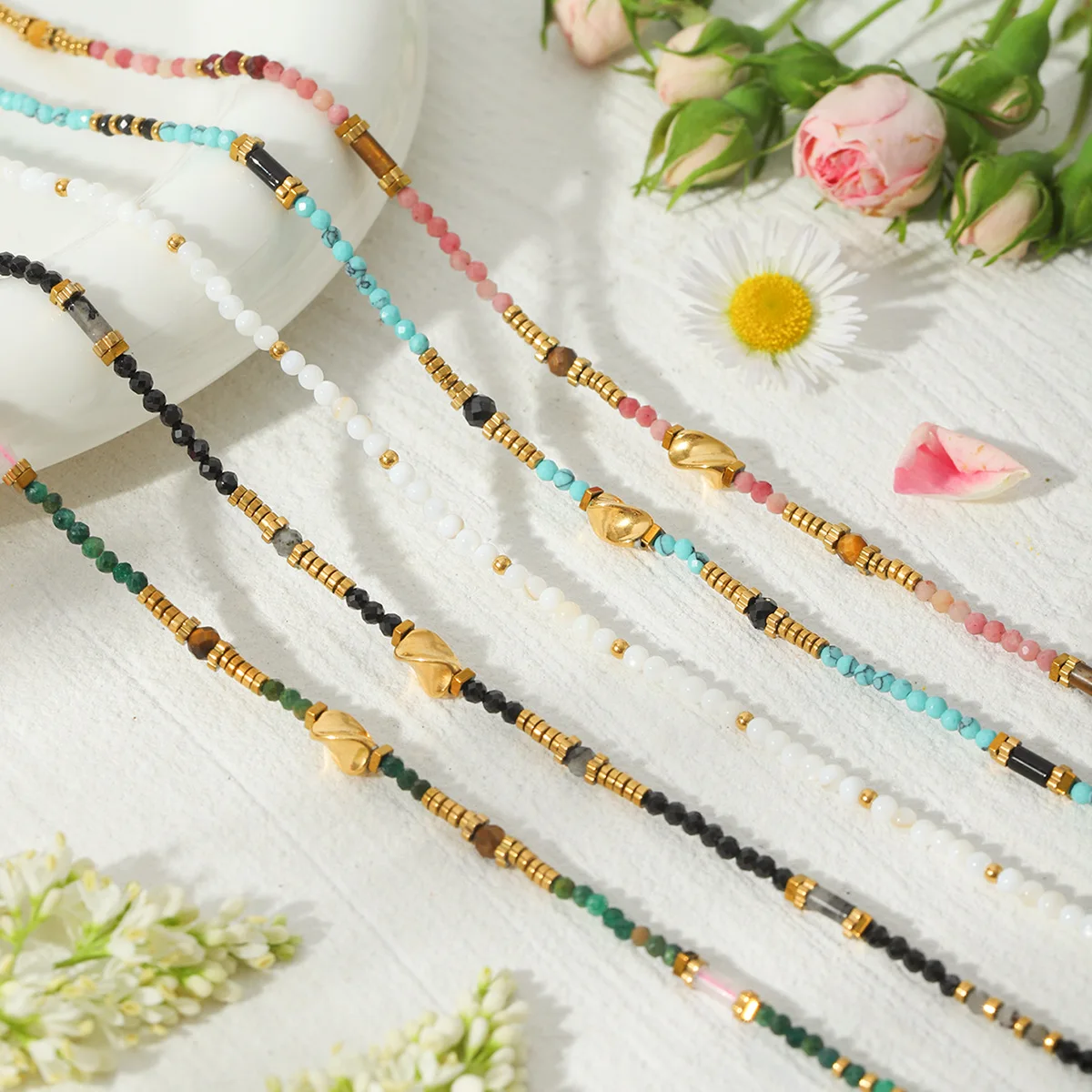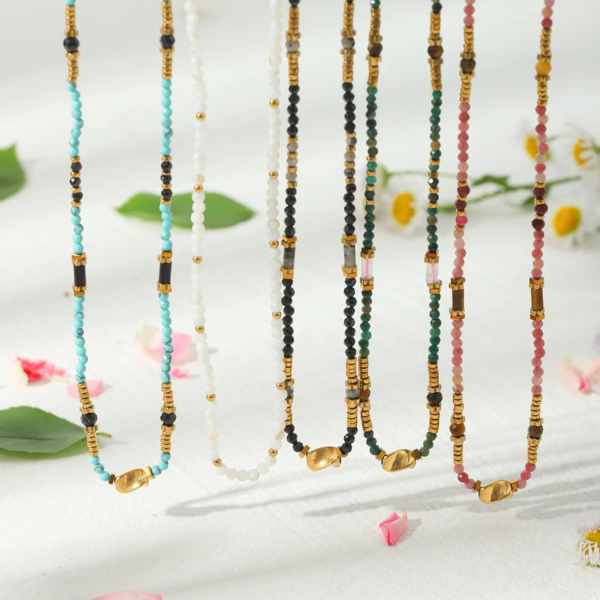 Fashion Jewelry Colorful Gold Beaded Charm Gemstone Stainless Steel Necklace Natural Stone Beaded for Women Jewelry Customized