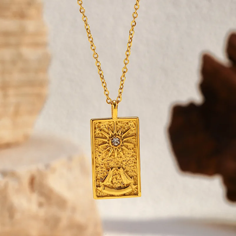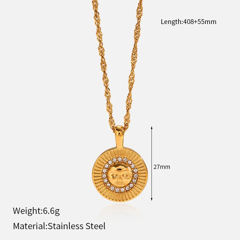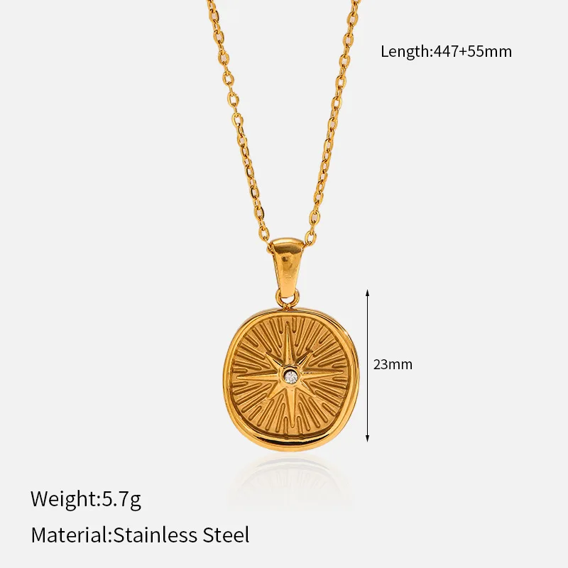 MW Wholesale New INS Wind Stainless Steel Necklace 18K Gold Plating Zircon Star Moon Pendant Geometric Link Chain Jewelry