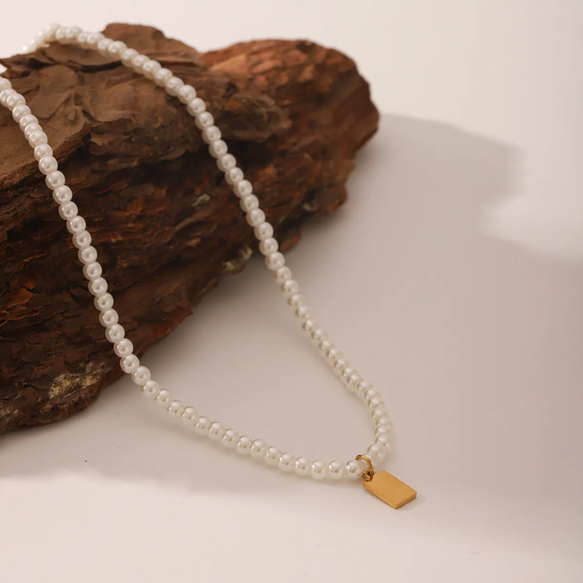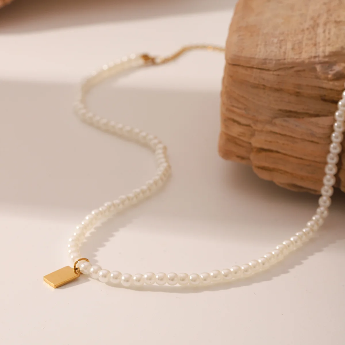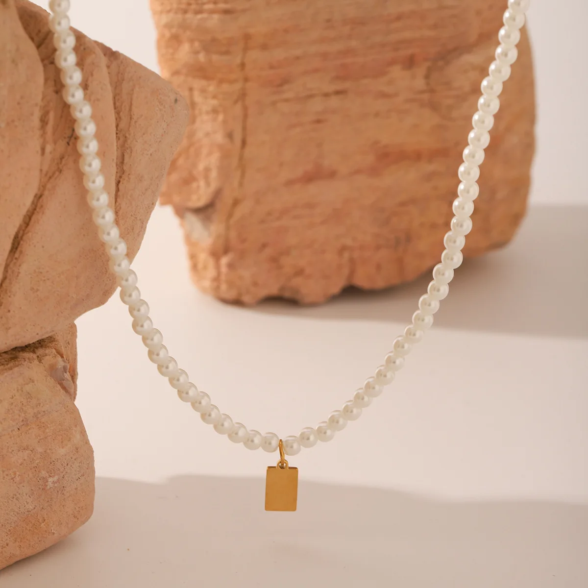 MW Elegant Women Imitation Pearl Anchor Shape 18K Gold Plated Stainless Steel Strand Chain Party Pendant Necklace