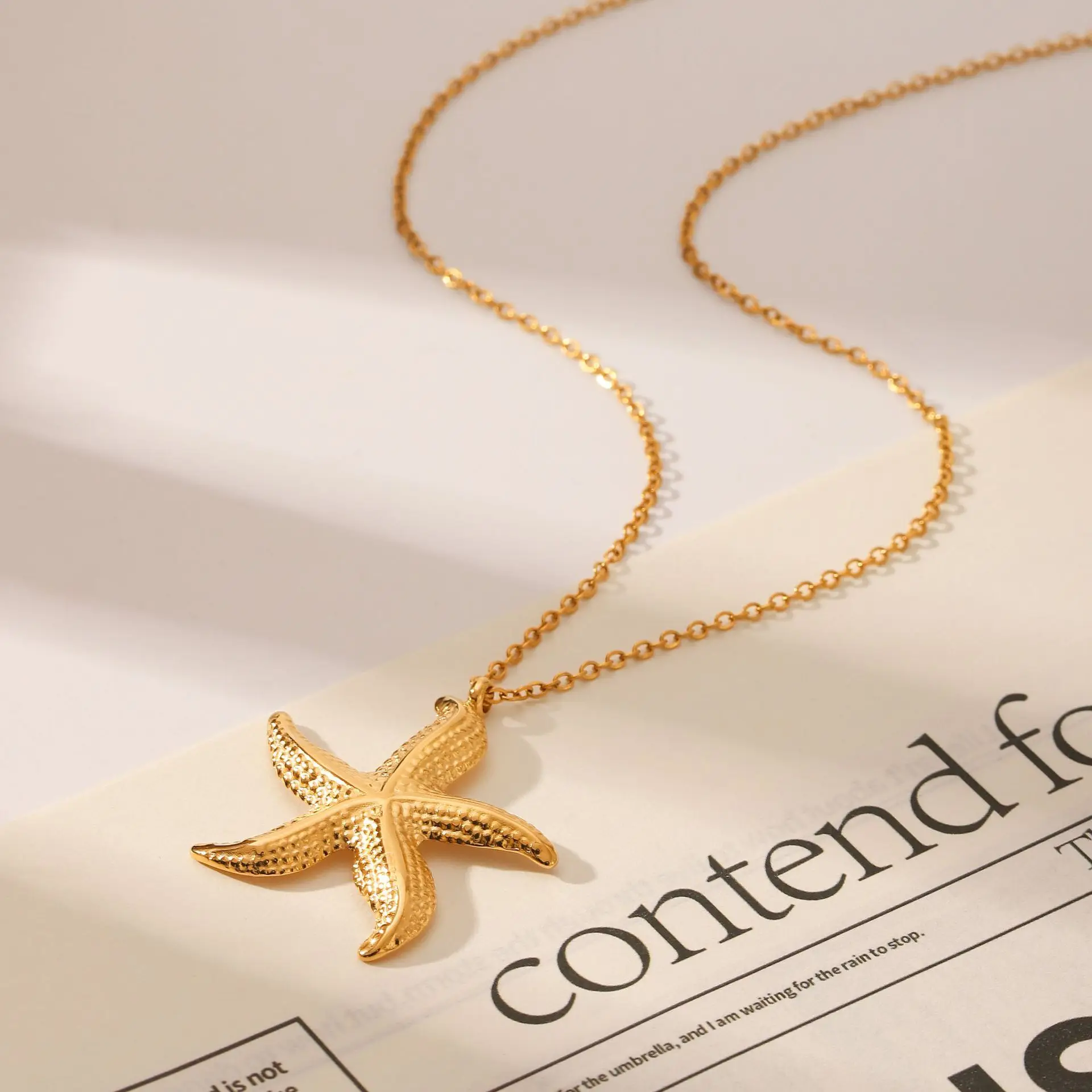 MW Stainless Steel Tarnish Free Women's Minimalist Ocean Themed 18K Gold Plated Starfish Pendant Necklace with Chains