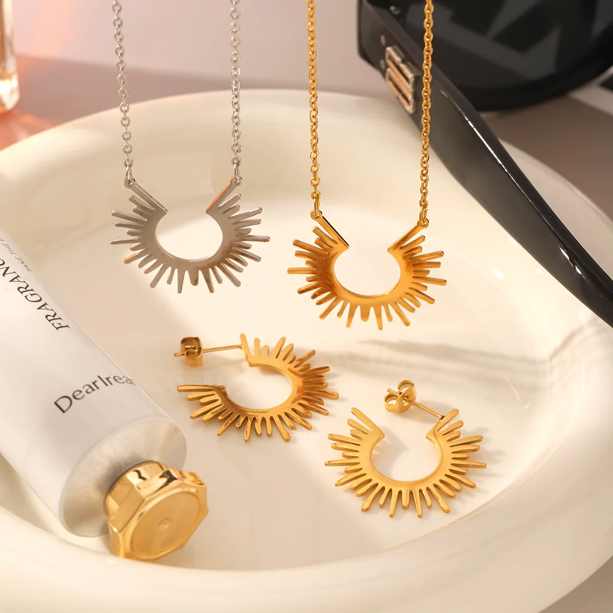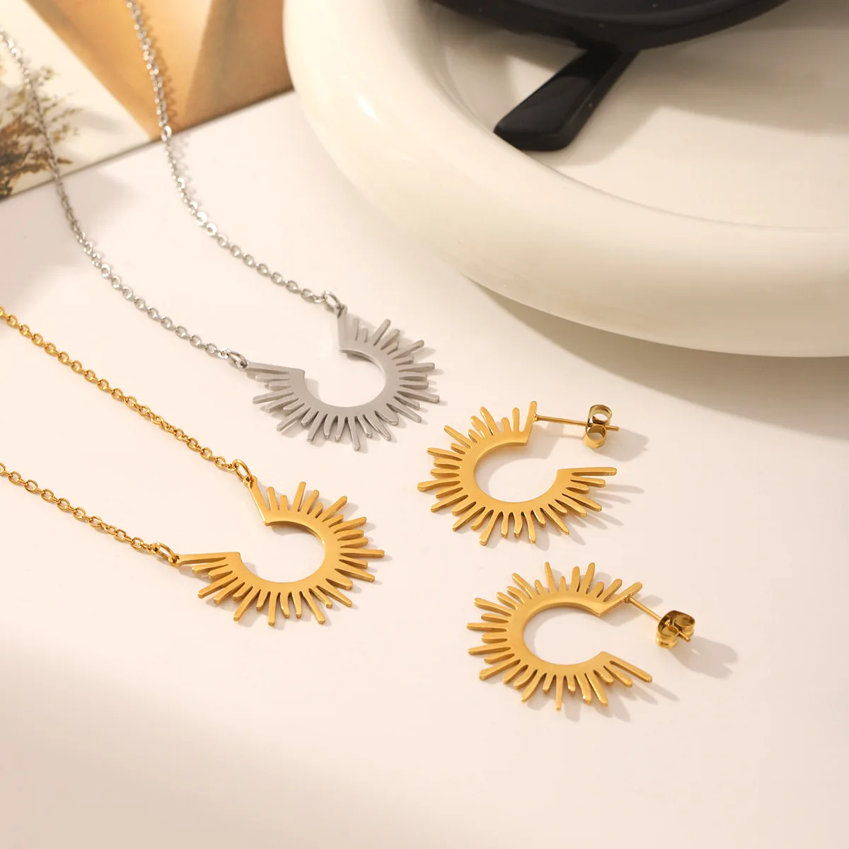 MW Fashion Constellation Charm Link Chain Tarnish Free PVD 18K Gold Plated Women Celestial Sunshine Stainless Steel Sun Necklace