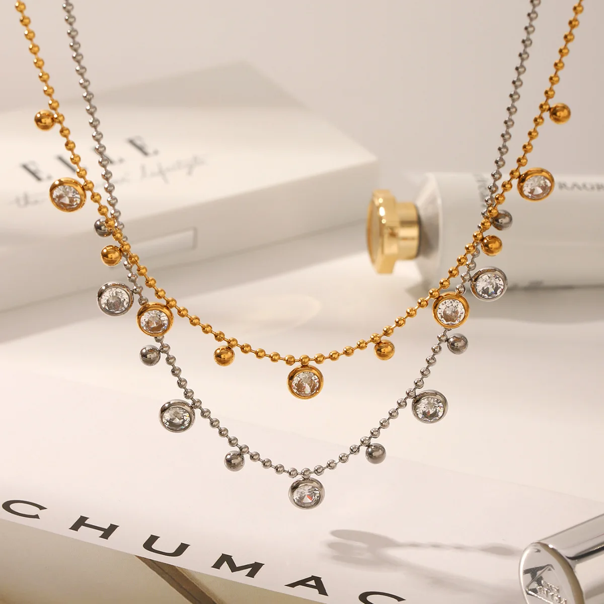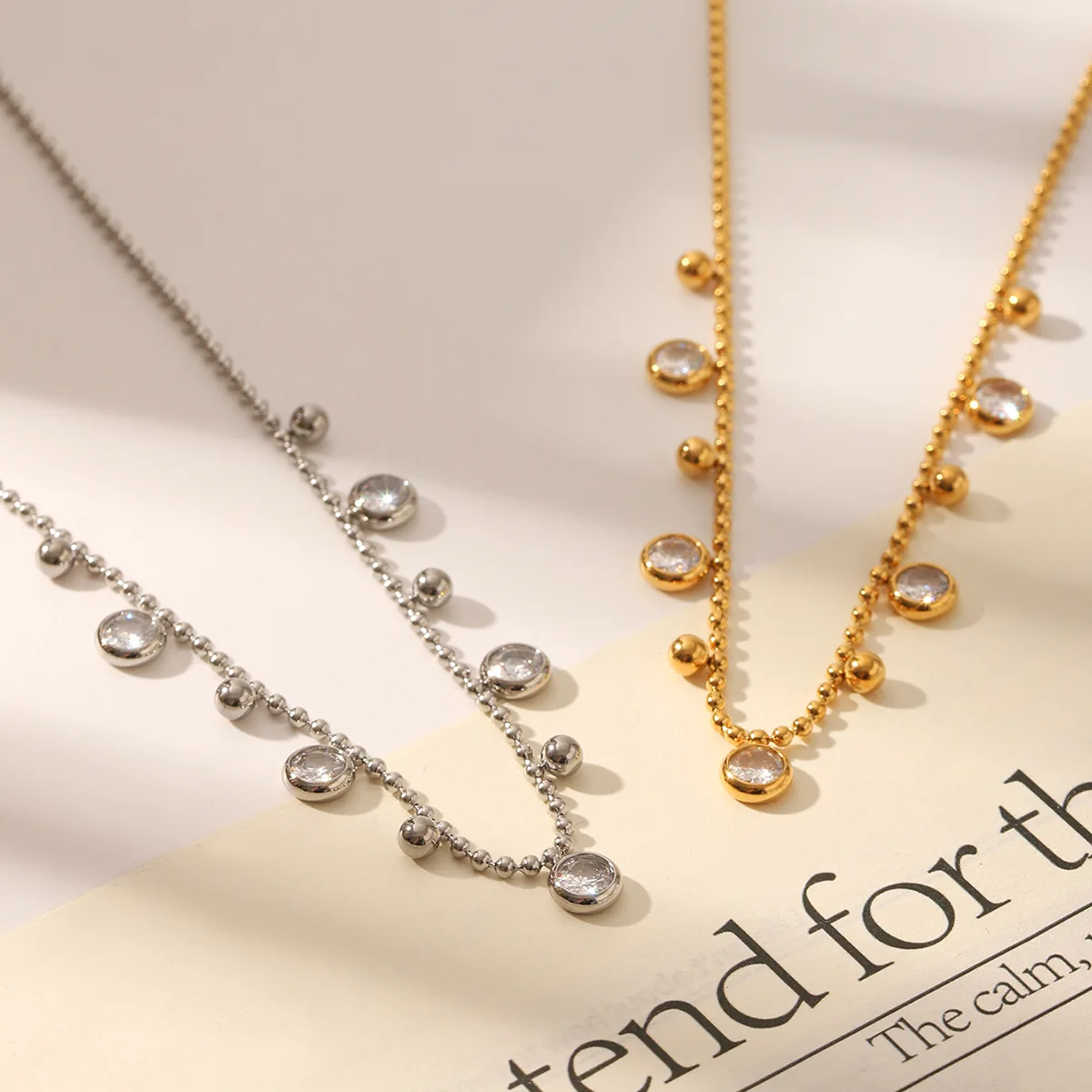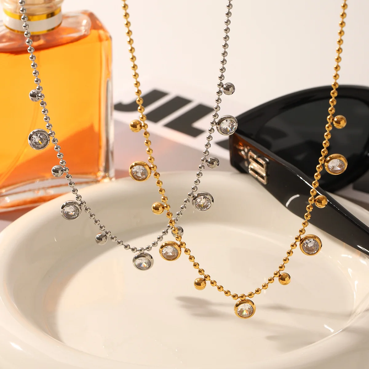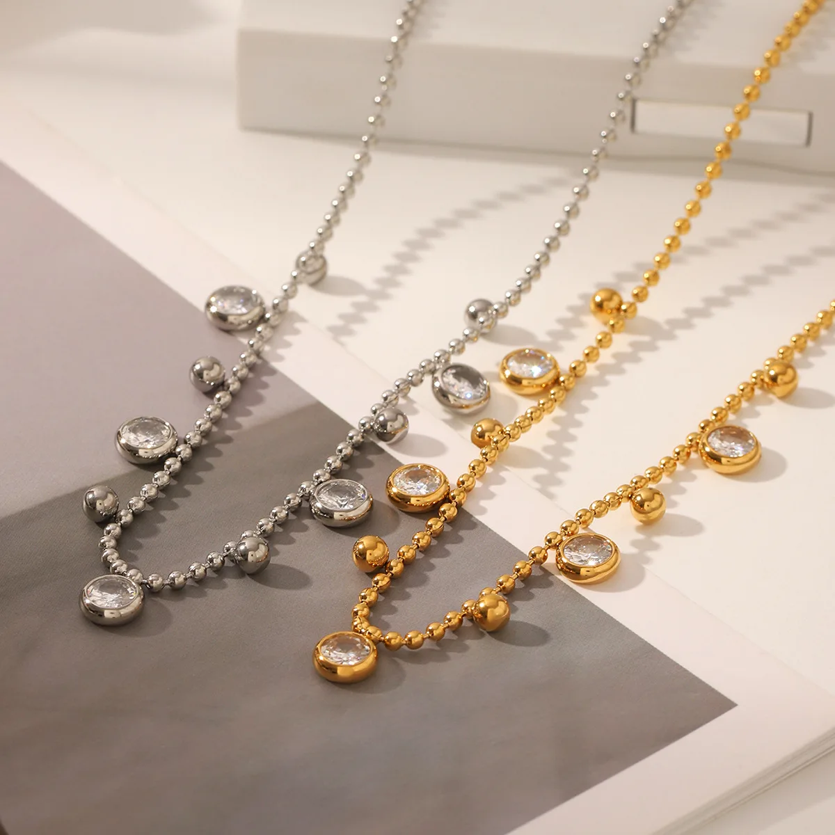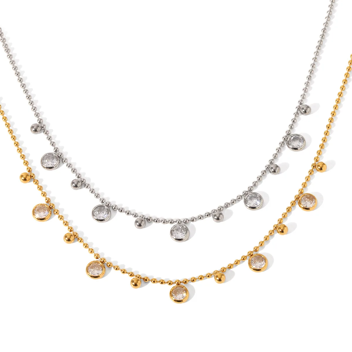 MW 18K Gold Plated Clear Zircon Charms Choker Jewelry Stainless Steel Bead Chain Round Zircons Necklace for Women Wholesale