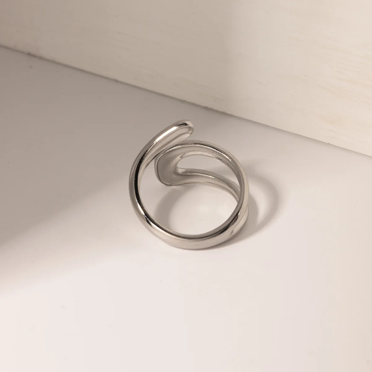 Mirawell Women's 18K Gold-Plated Stainless Steel Ring Double-Layer Irregular Open Design Waterproof Adjustable Trendy Daily Wear