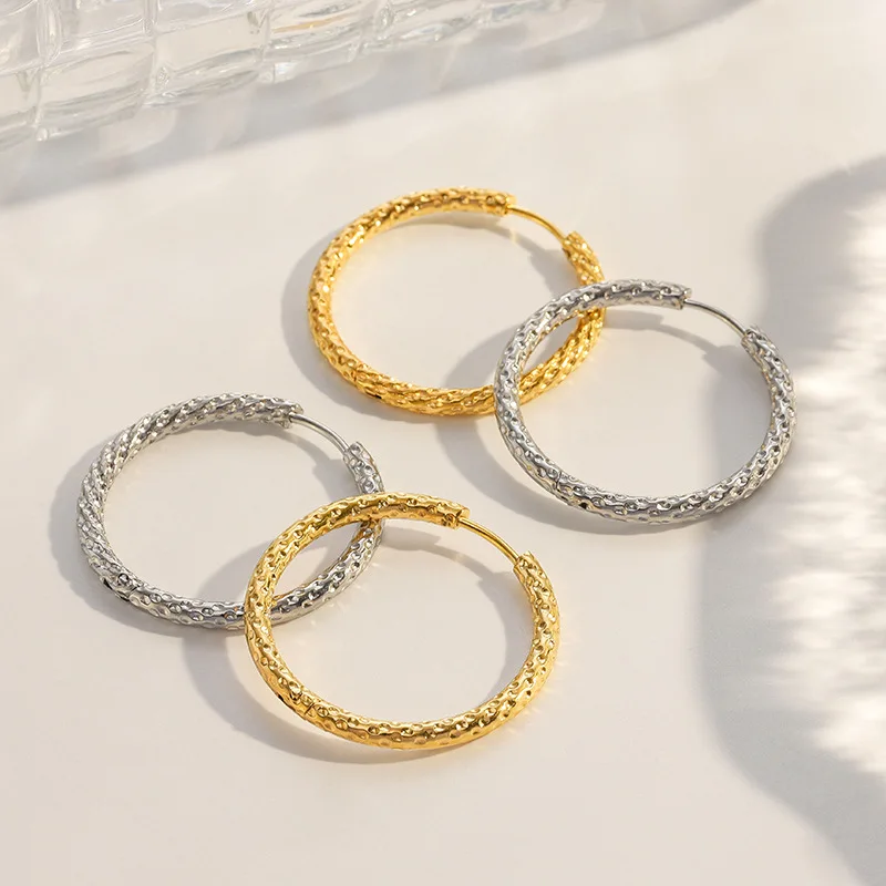 MW 18K Gold Plated Stainless Steel Huggie Hoop Earrings Minimalist Geometric Pattern Trendy Small Earrings Orthodox Party