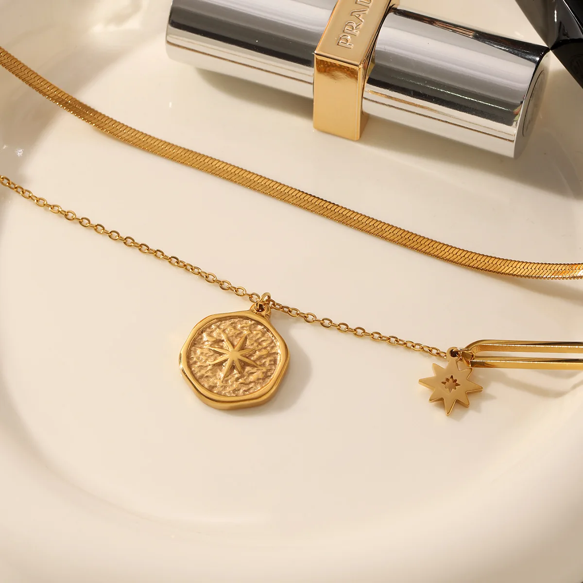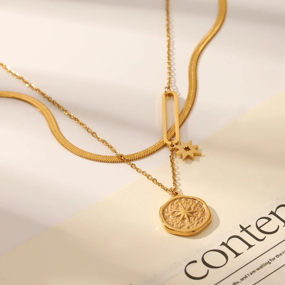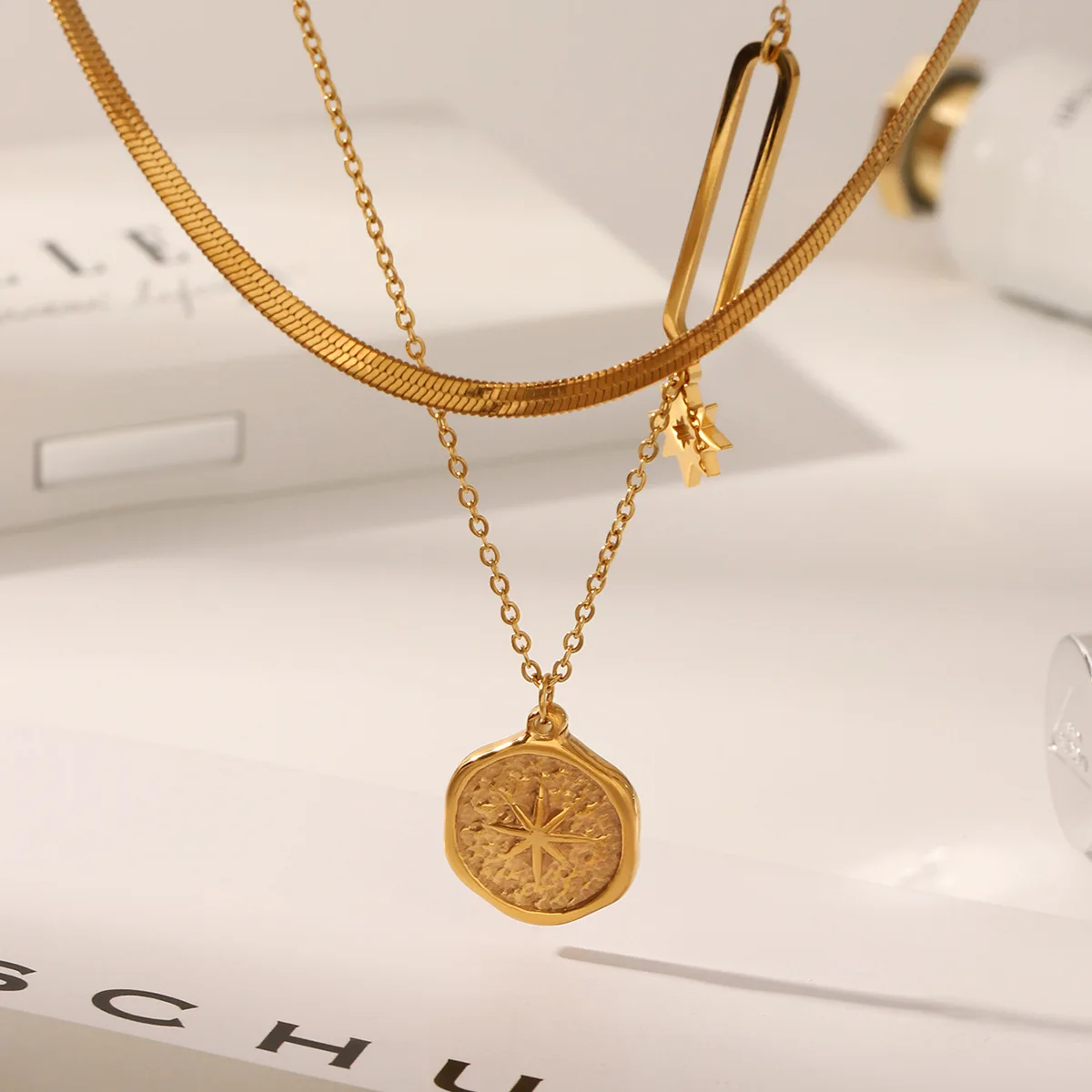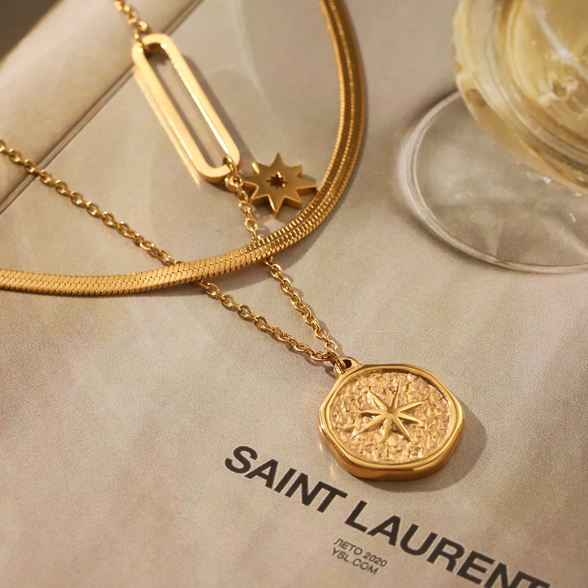 MW New French 18k Gold Electroplated Non Fading Stainless Steel Hexagram Double Layer Necklace Star Necklaces Fashion Jewelry