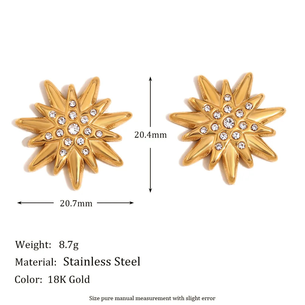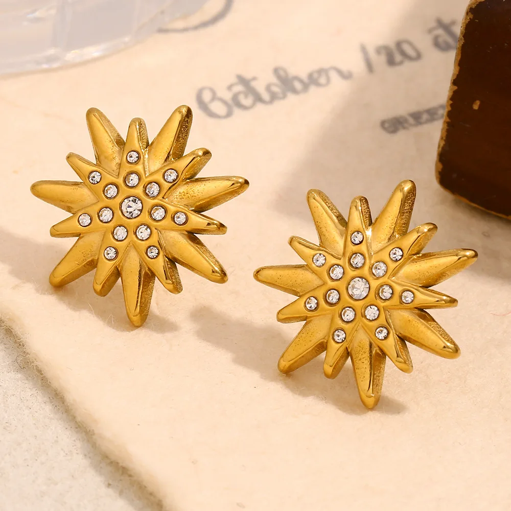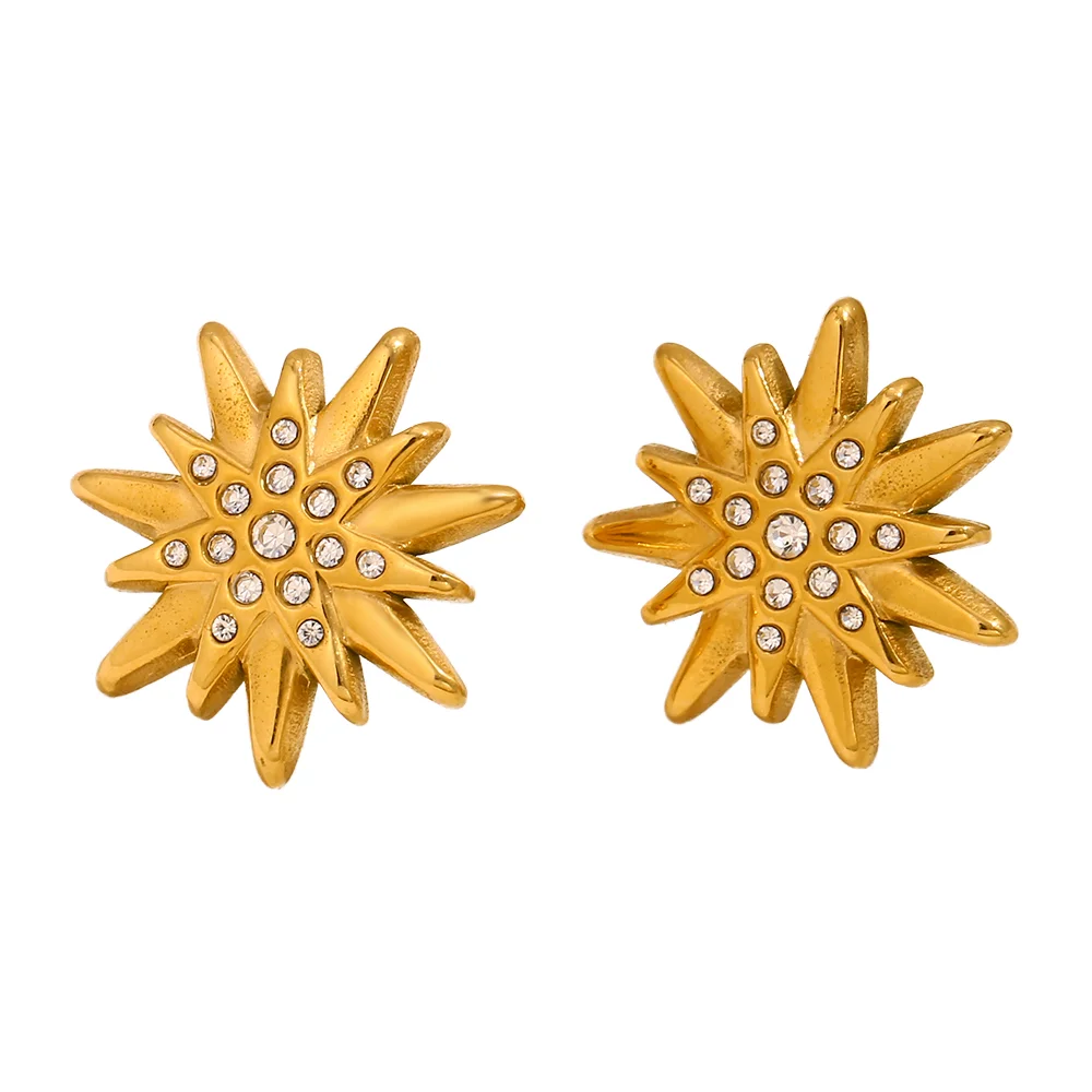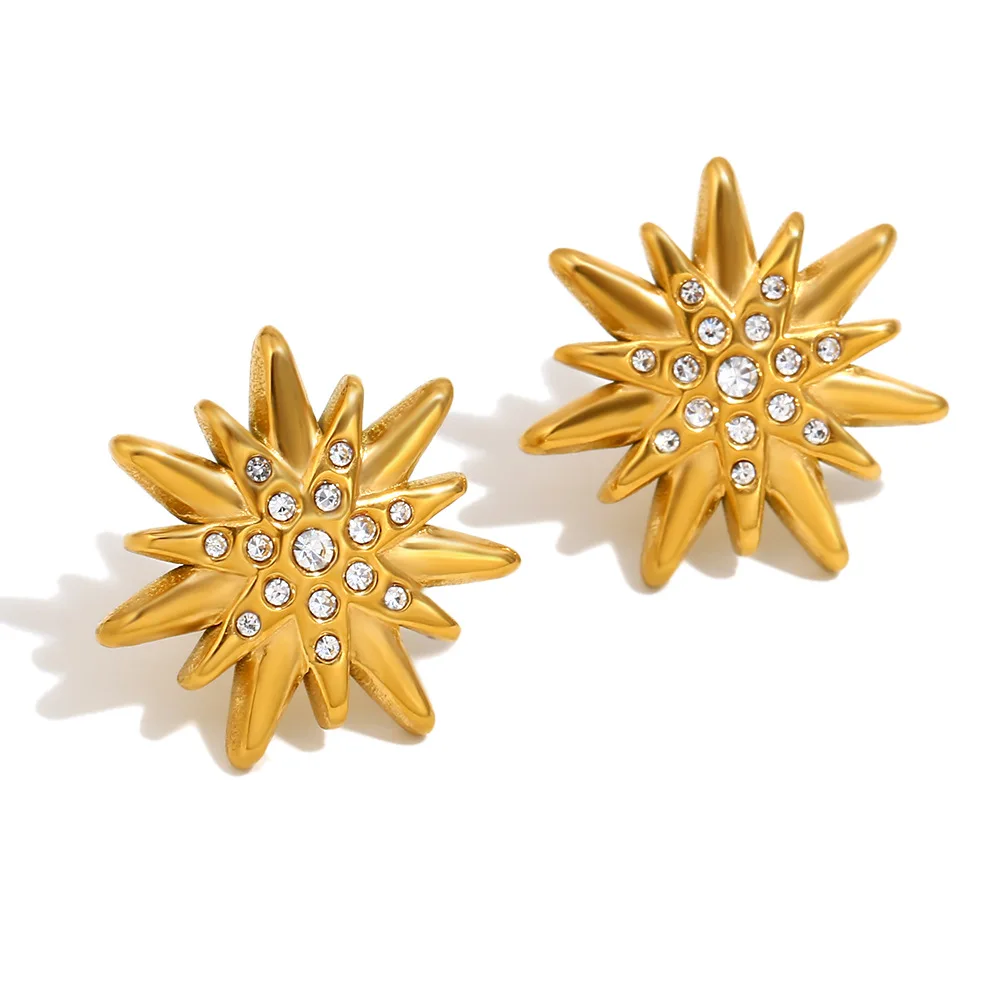MW Fashion New Woman Earrings Stainless Steel Gold Plated Starburst Zirconia Stud Earrings Trendy Princess Cut Diamond Earring