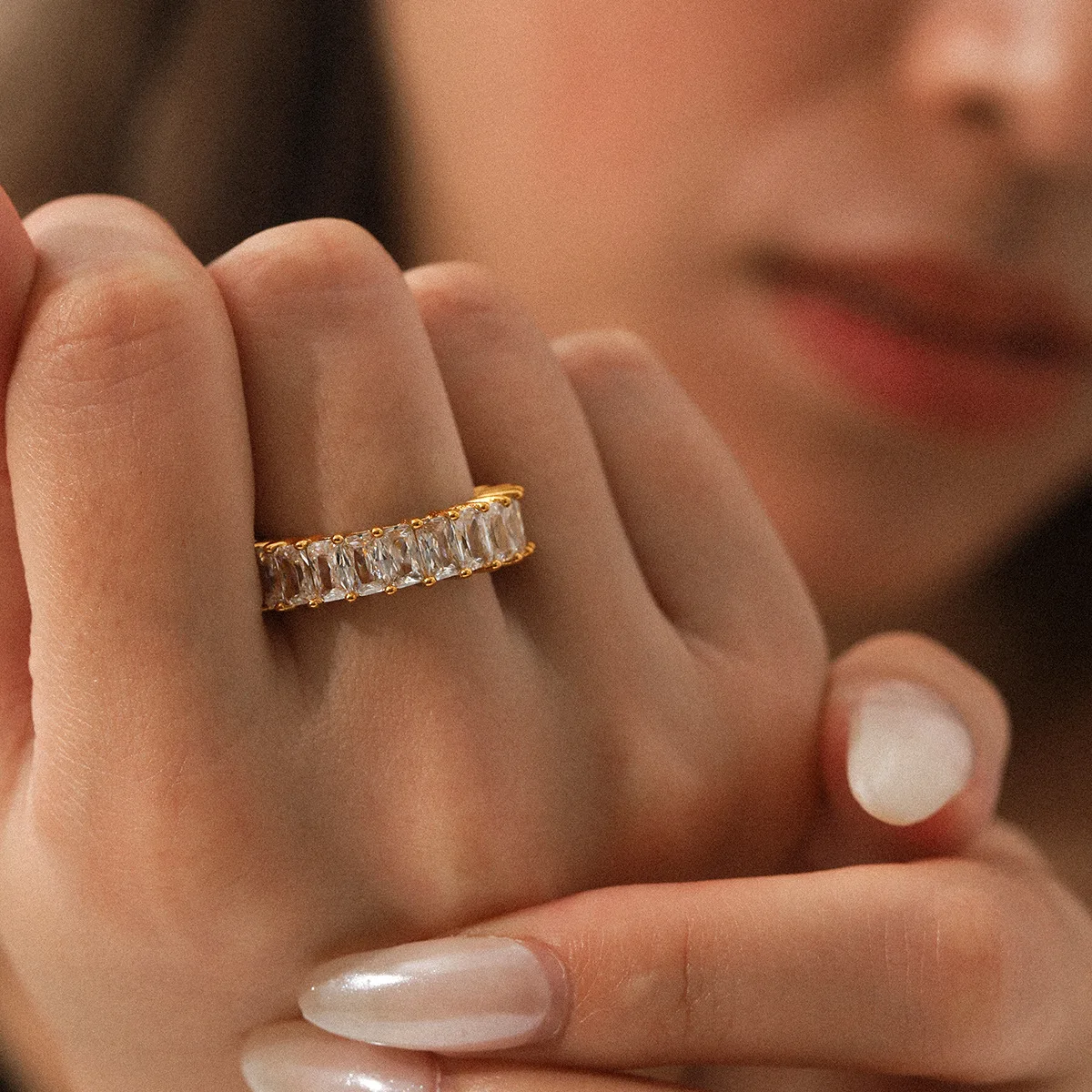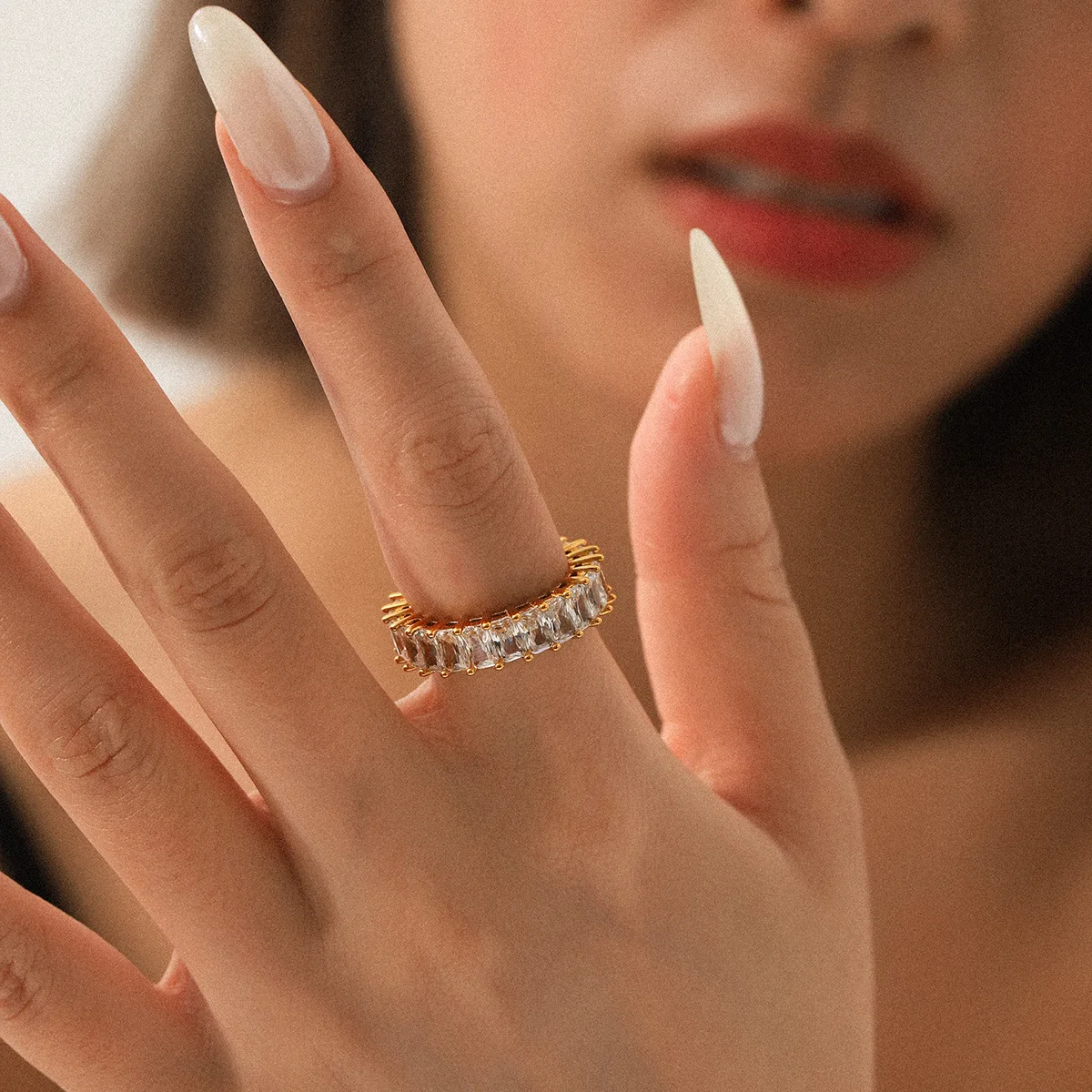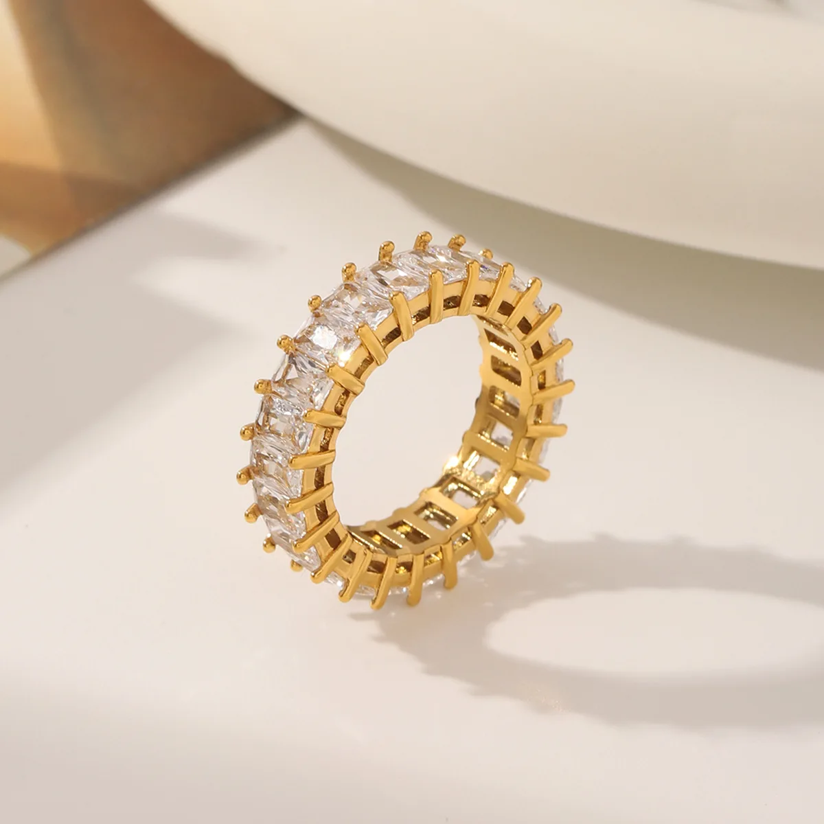 MW Custom Iced Out Bling Bling 18K Gold Plated Stainless Steel Zircon Rings Engagement Wedding Ring Women