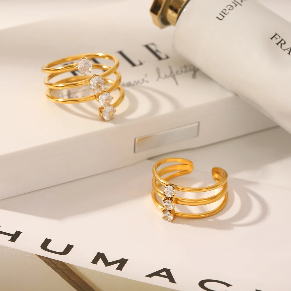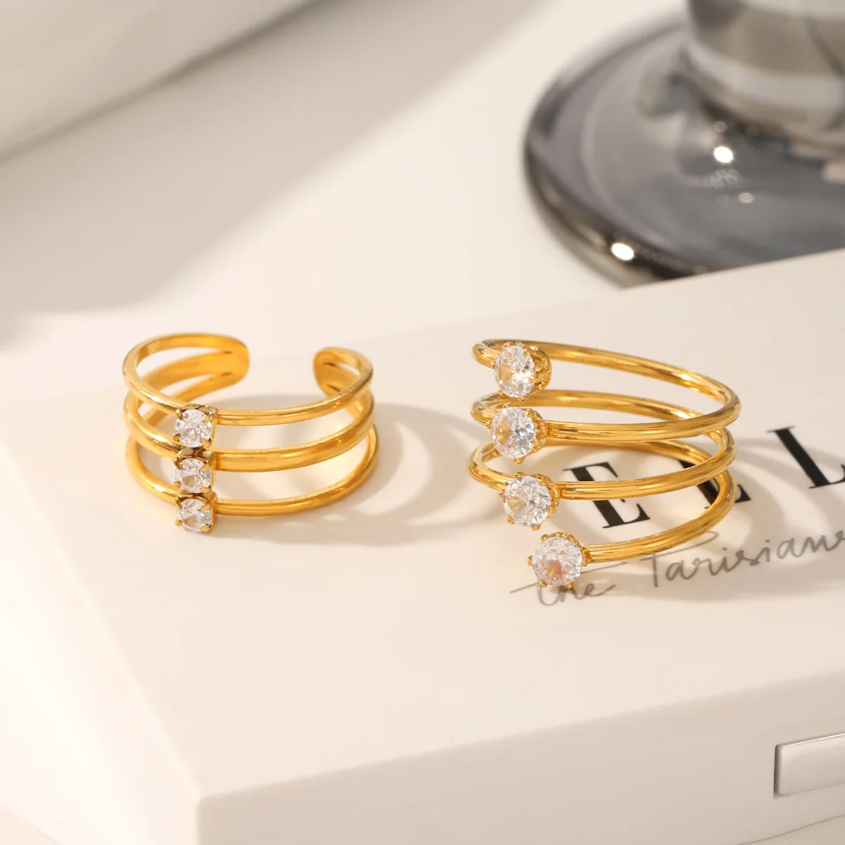 MW Ins Fashion Spiral Spring Design Open Stainless Steel Cubic Zircon 18k PVD Gold Plated Finger Rings Women Waterproof Jewelry