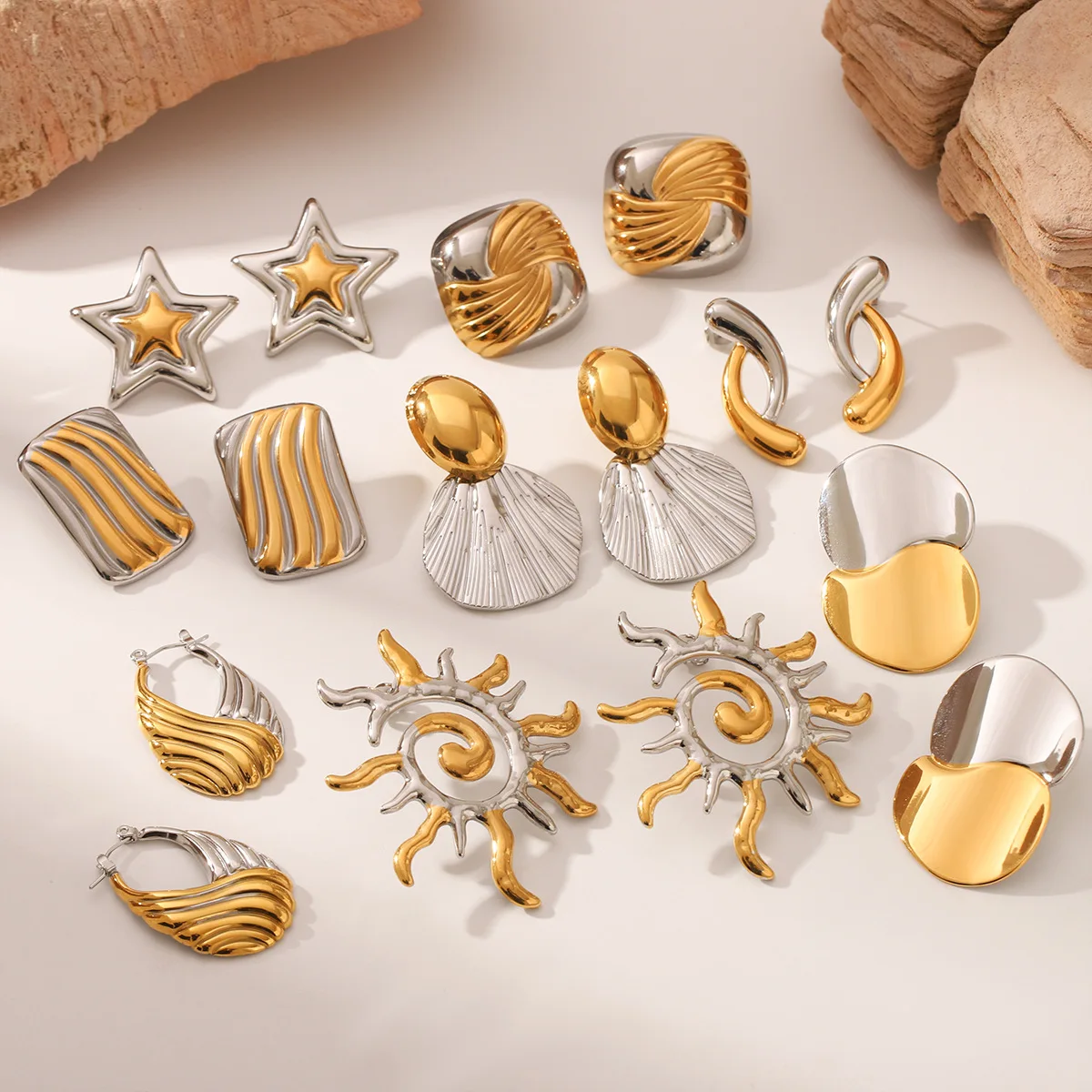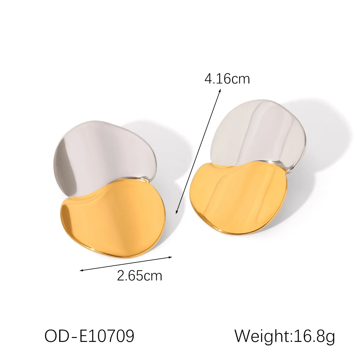 MW 18K Gold Plated Hypoallergenic Stainless Steel Women's Earrings Hammered Geometric Earrings Mixed Color Fashion Jewelry