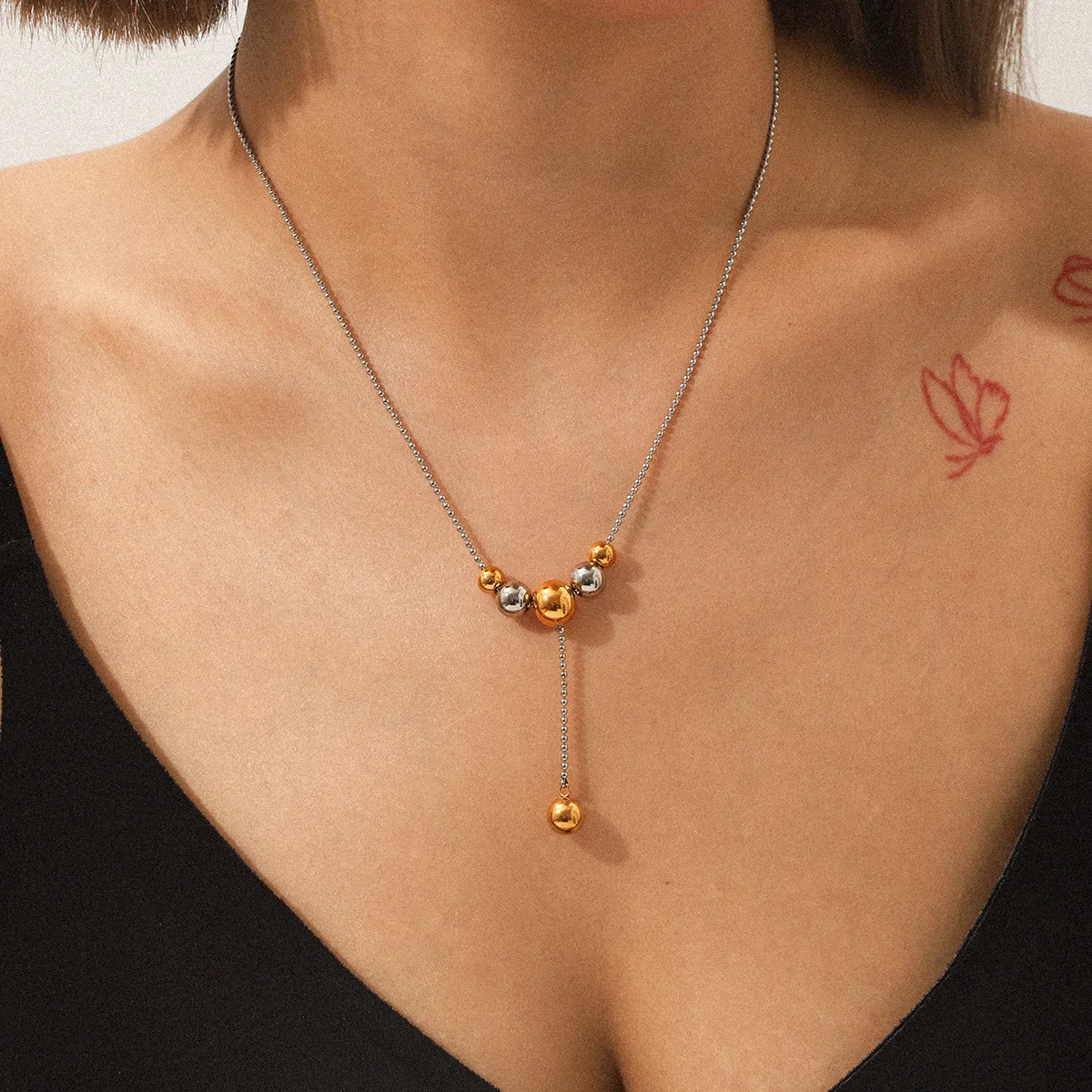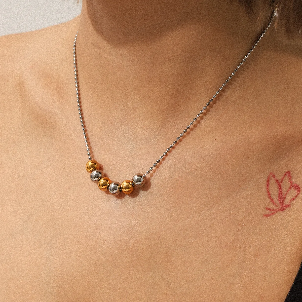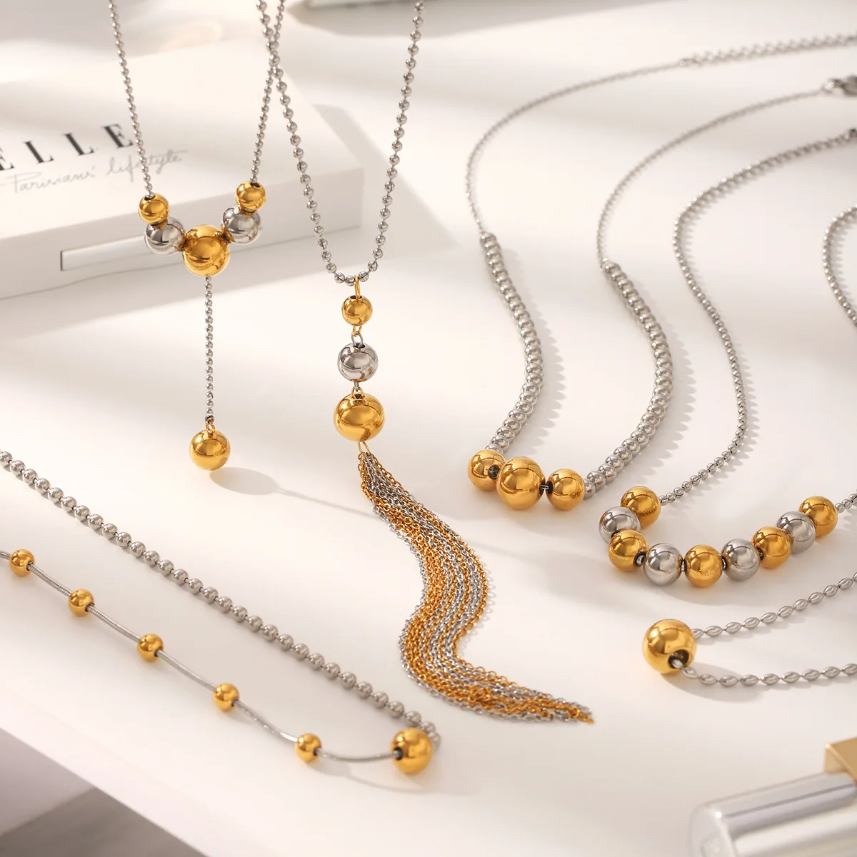 MW Bead Jewelry Stainless Steel Strand Necklace 18K Gold Plated Party Women's Minimalist Light Luxury Diamond Pearl Niche