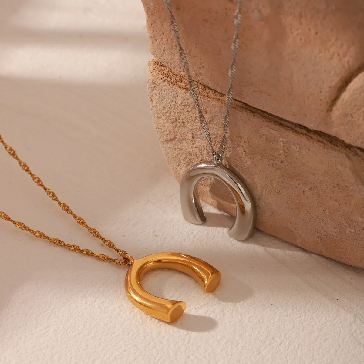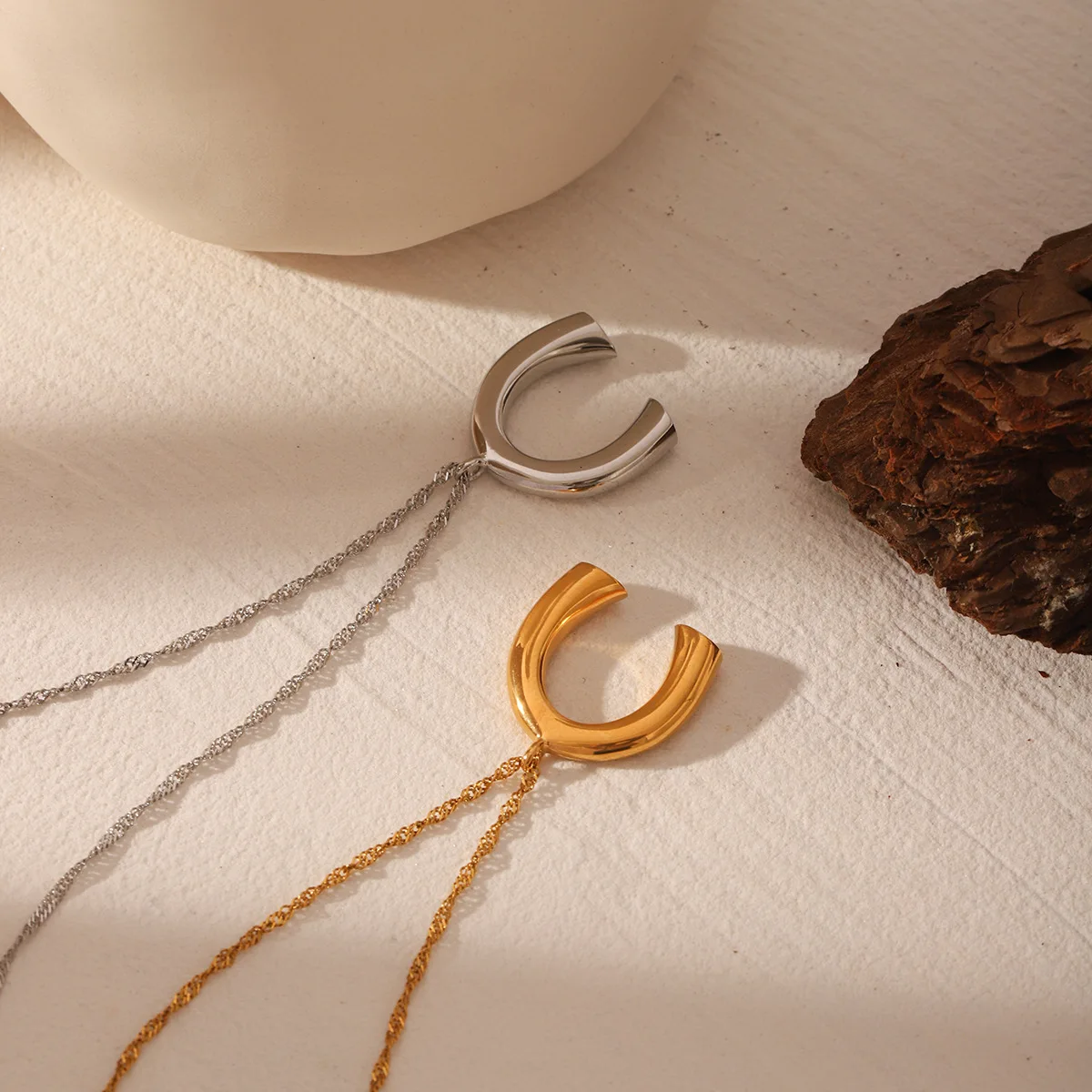 MW Niche Design Women's Stainless Steel Necklace with Niche Design Sophisticated and Versatile Geometric U-shaped Pendant
