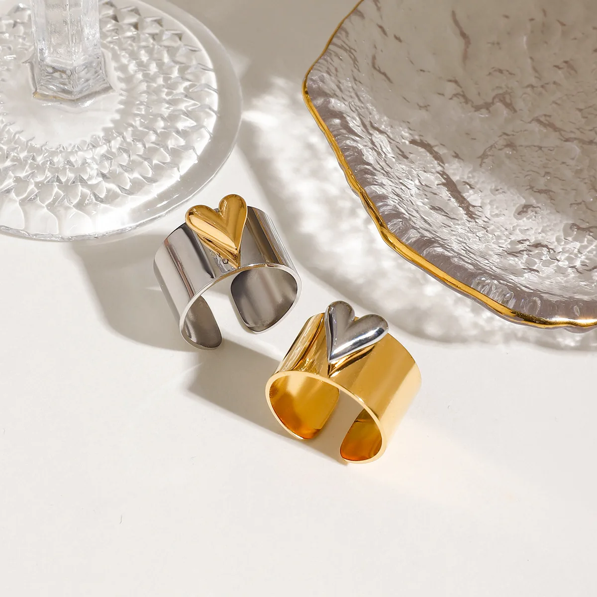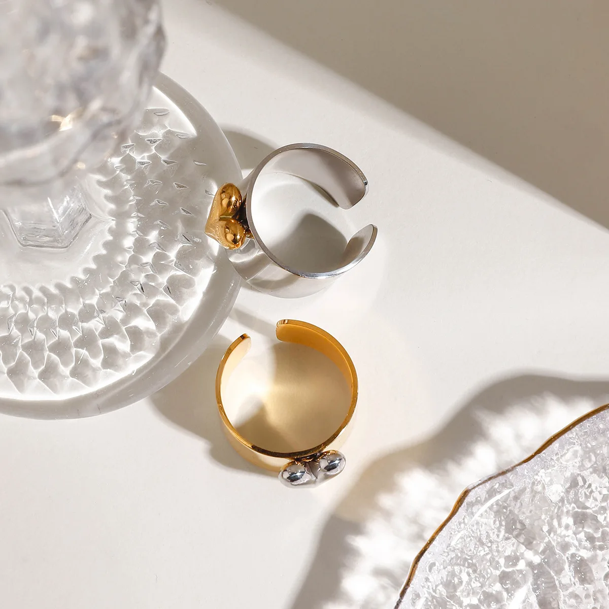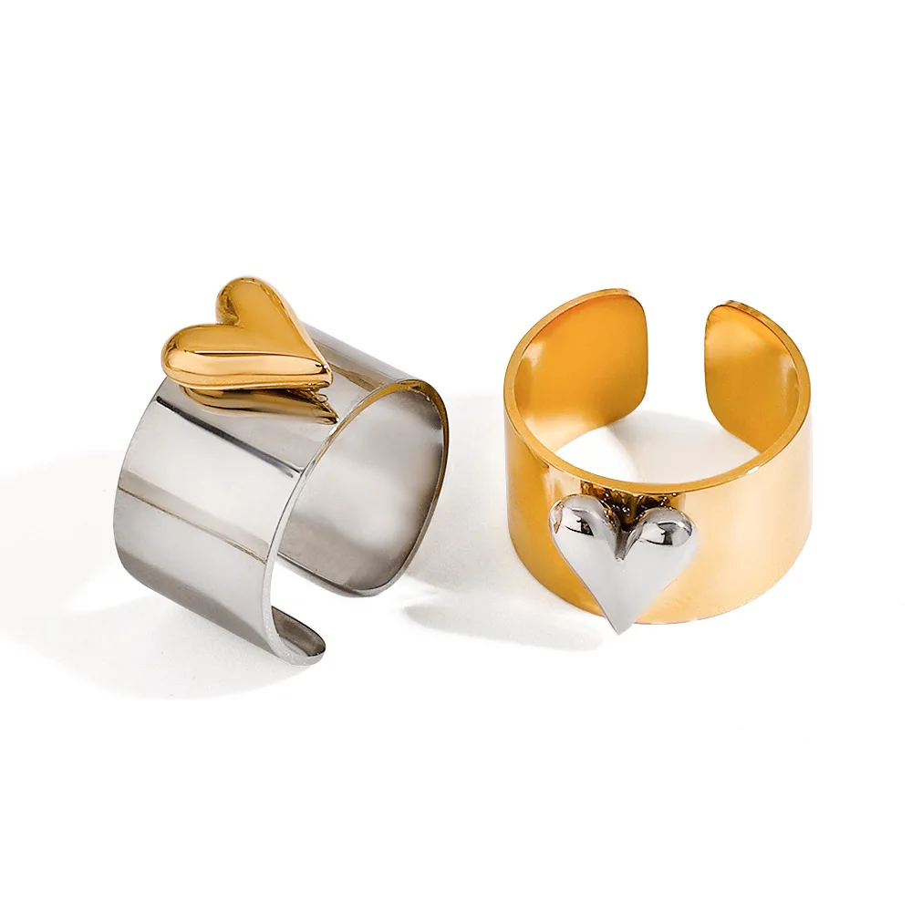 MW Women's Minimalist & Stylish 18K Gold-Plated Stainless Steel Ring - Two-Tone Design, Versatile, Waterproof & Open Adjustable