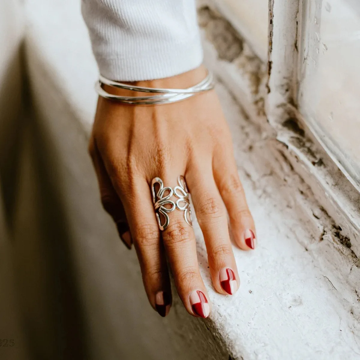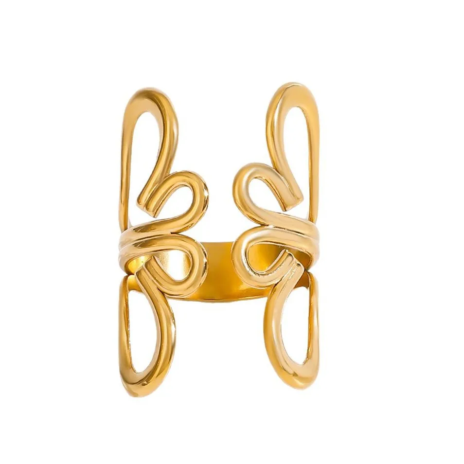 Mirawell Women's Minimalist Stylish 18K Gold-Plated Stainless Steel Ring-Hollow Butterfly Design Open Adjustable for Wedding