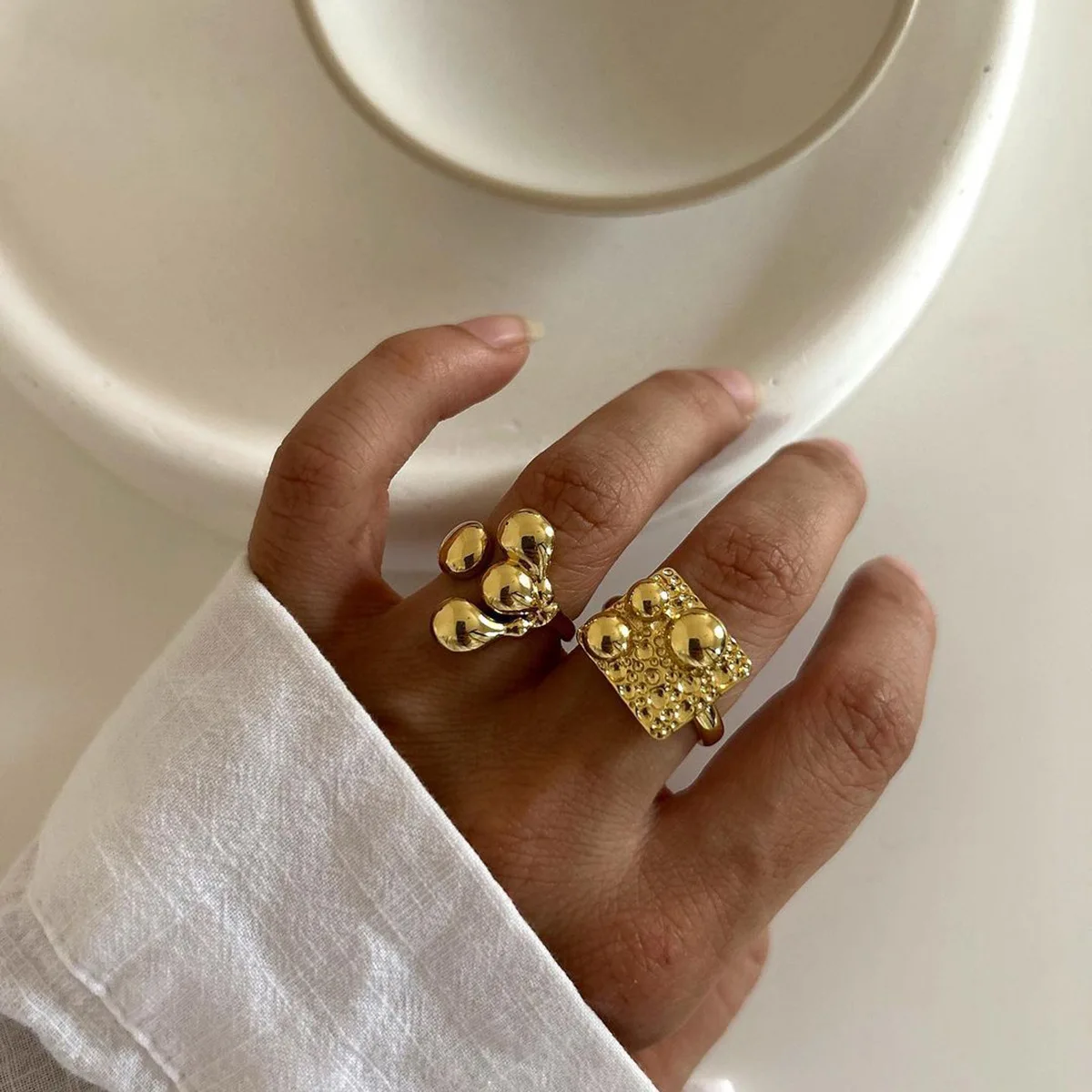 MW Women's Minimalist & Stylish 18K Gold-Plated Stainless Steel Ring - Irregular Textured, Open Adjustable, High-End Design