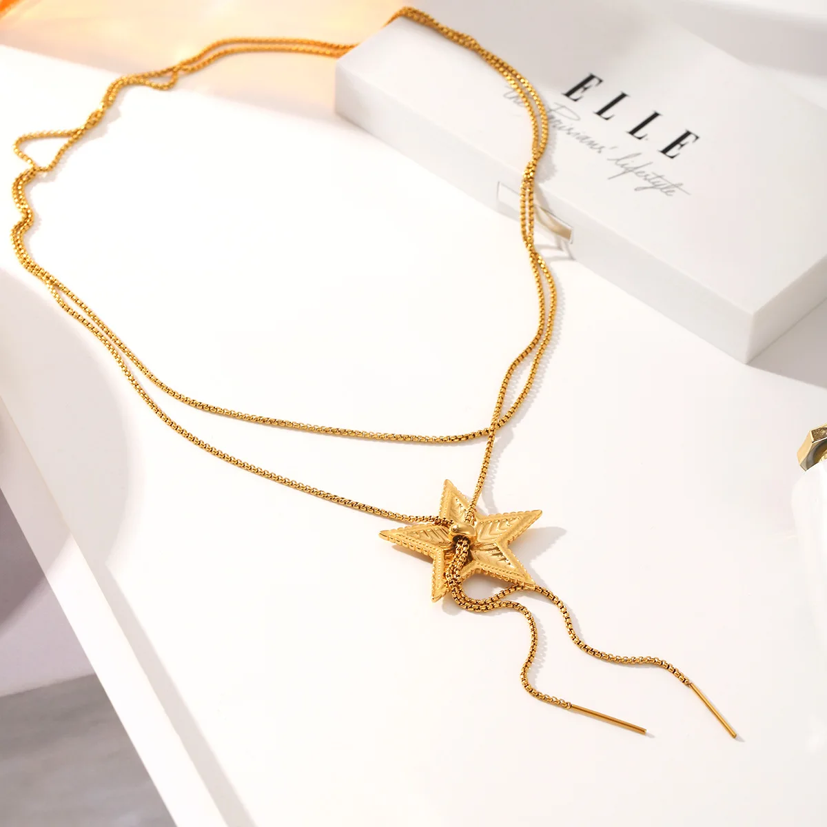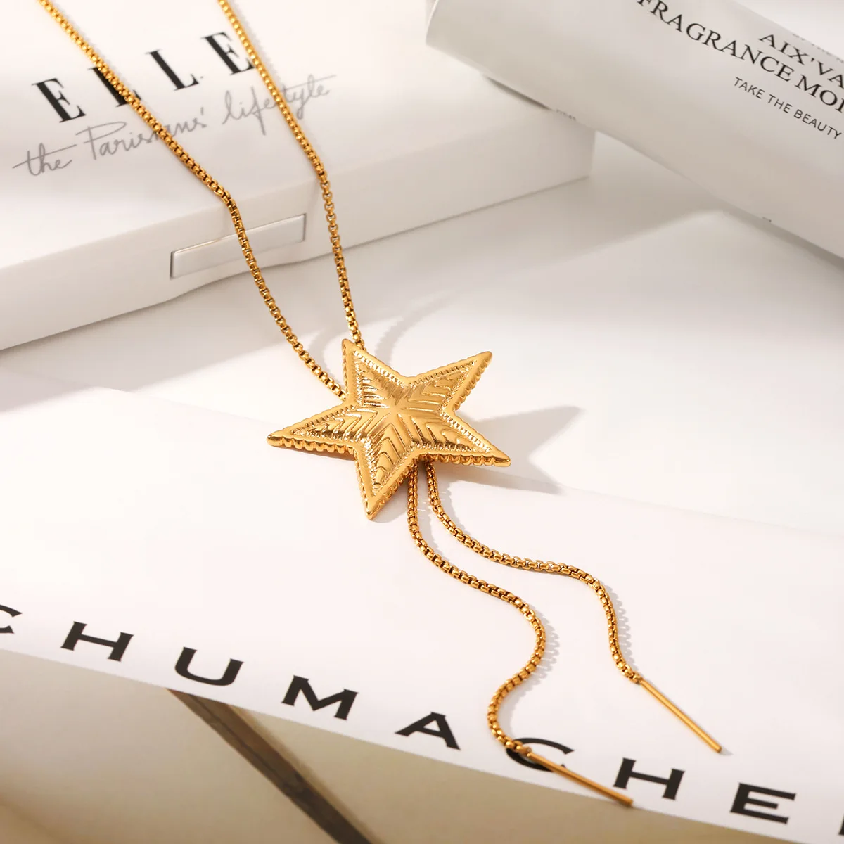 MW 18K PVD Gold Plated Stainless Steel Jewelry Trendy Minimalist Star Pull Out Adjustable Link Chain Necklace for Parties