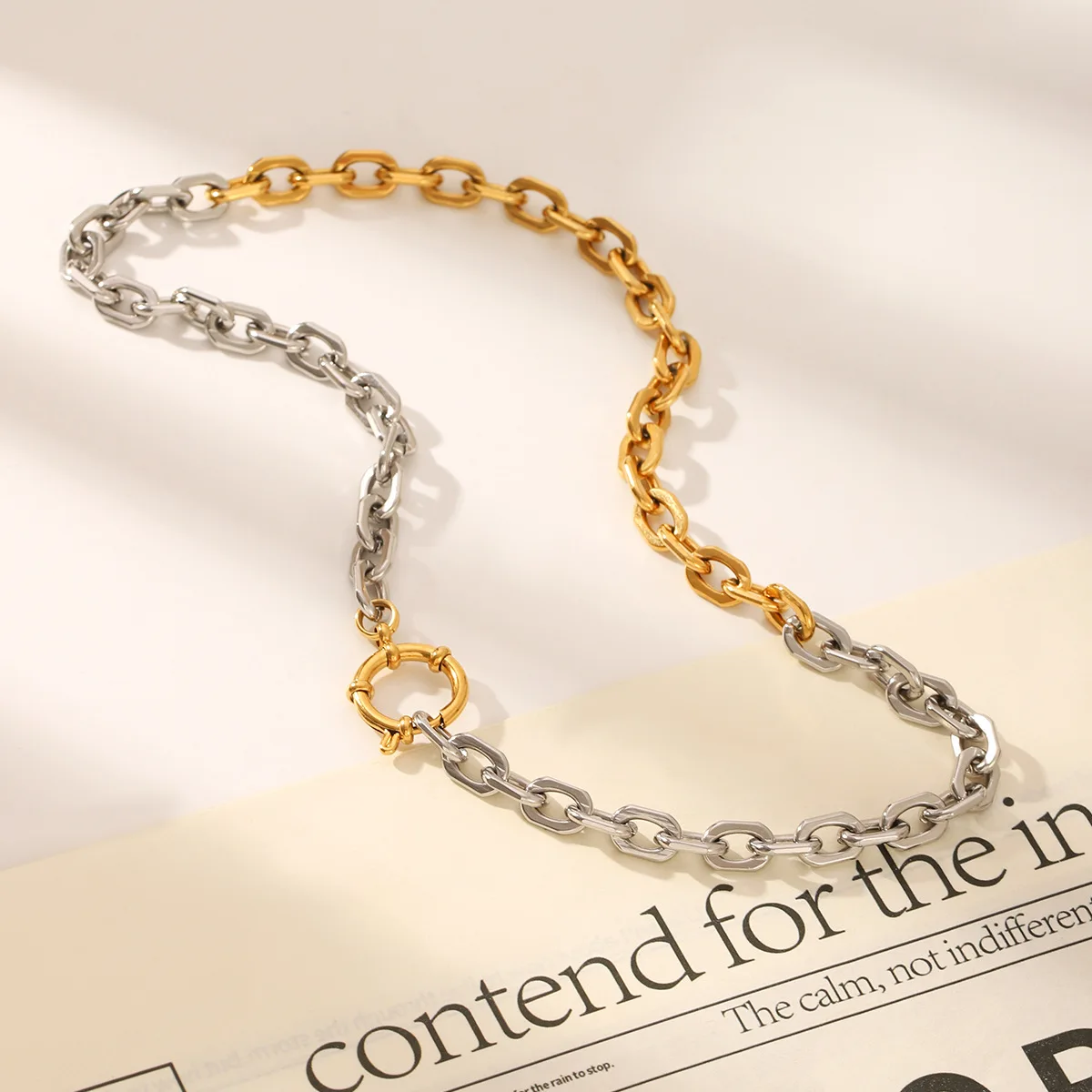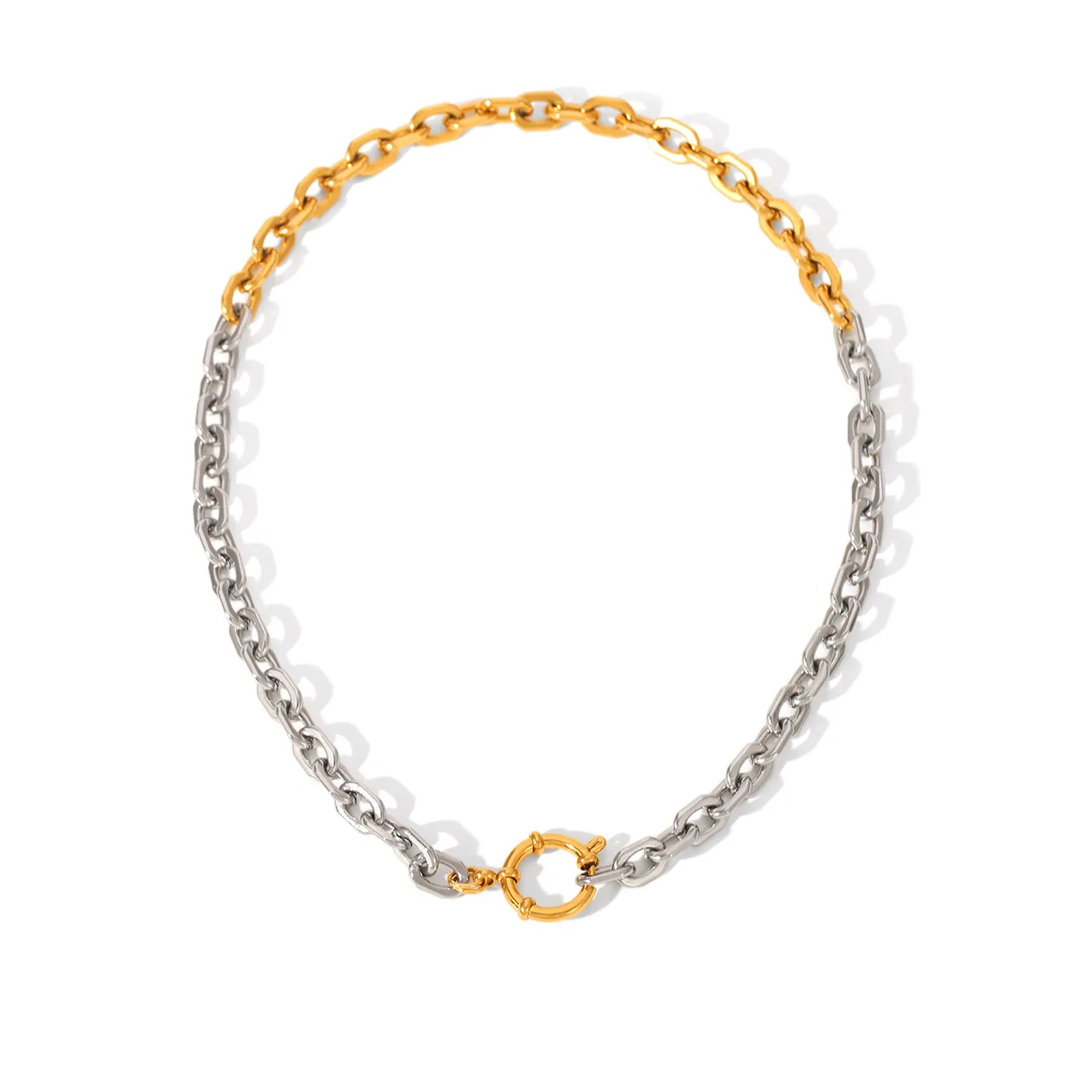 MW Minimalist Waterproof Jewelry 18k Gold Plated Stainless Steel Spring Buckle Square Chain Necklace for Women and Men