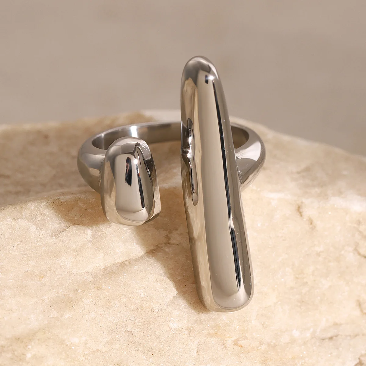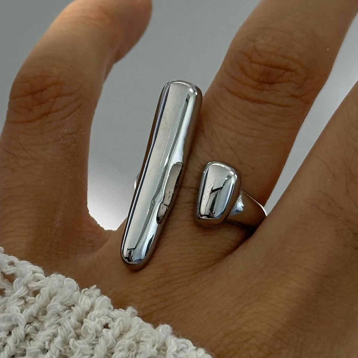MW Women's Modern Minimalist Stylish 18K Gold-Plated Stainless Steel Ring Geometric Line Design Open Adjustable Waterproof