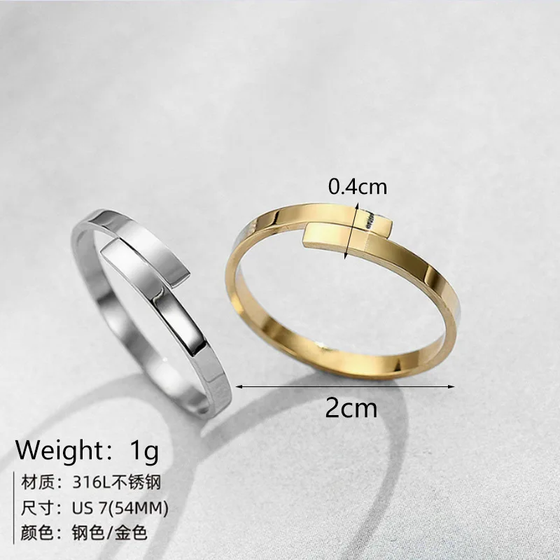 MW Custom Women's 2MM Stainless Steel Wrap Rings Minimalist Classic Style Party Jewelry Adjustable Letters Symbols CNAS