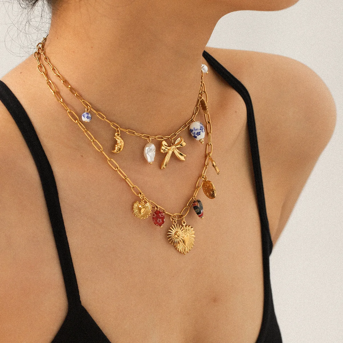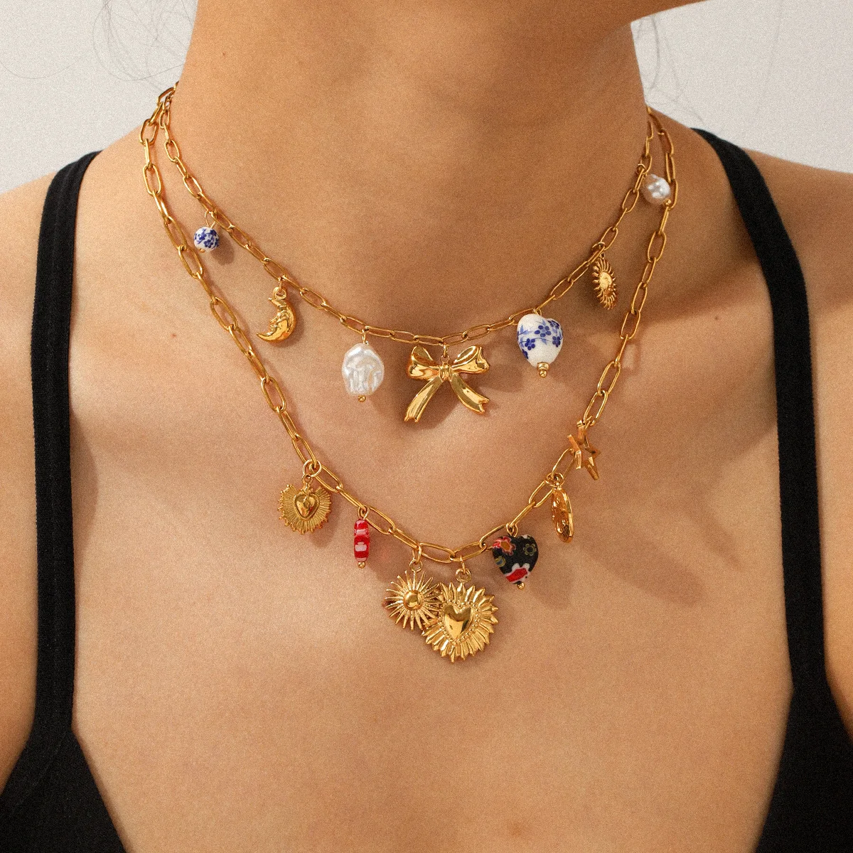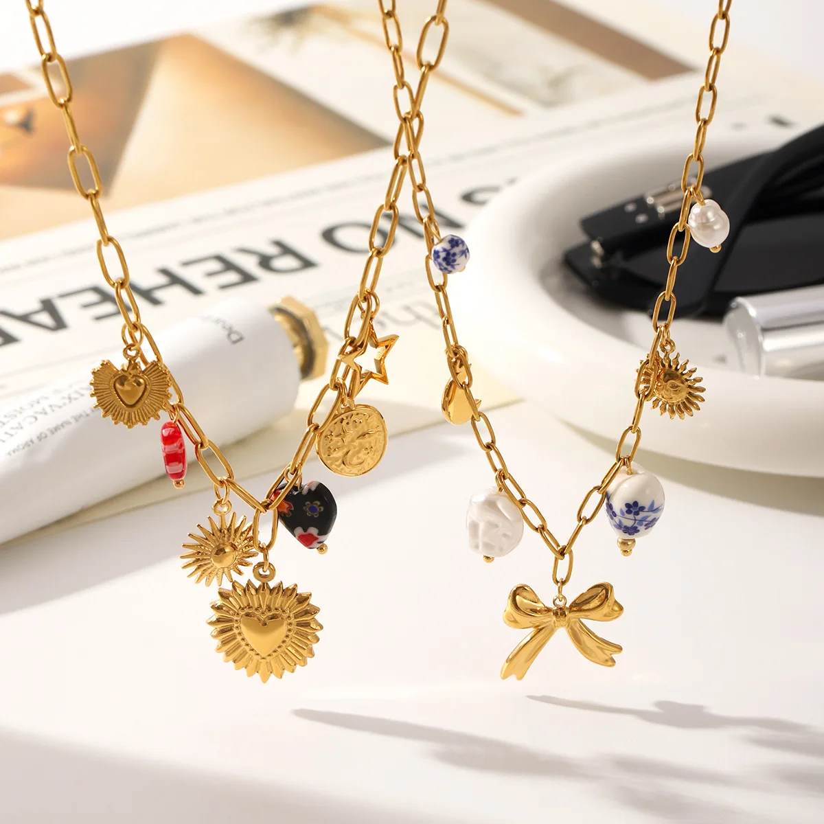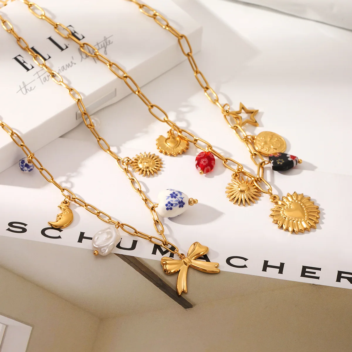 MW Custom DIY Starfish Conch Charms Gold Plated Stainless Steel Ocean Sun Pendant Pearl Necklace Fashion Beach Jewelry