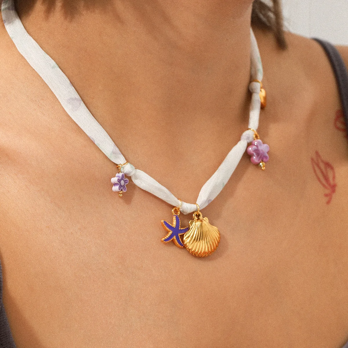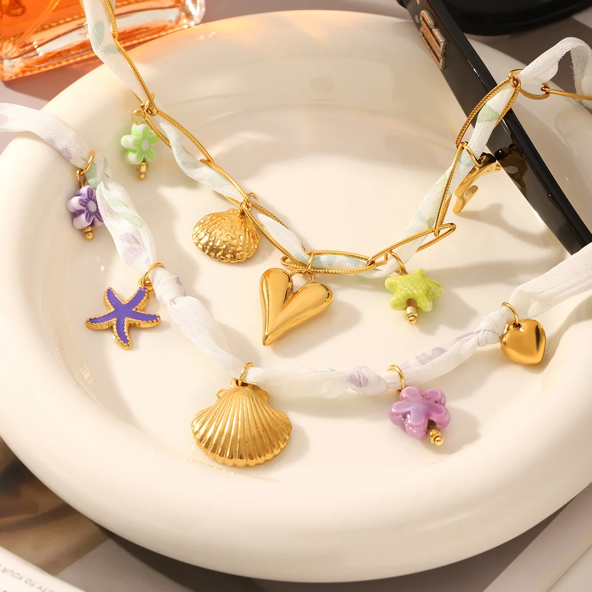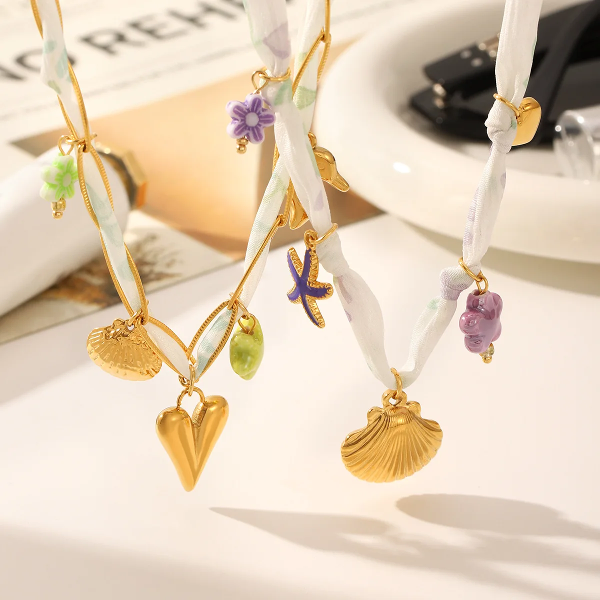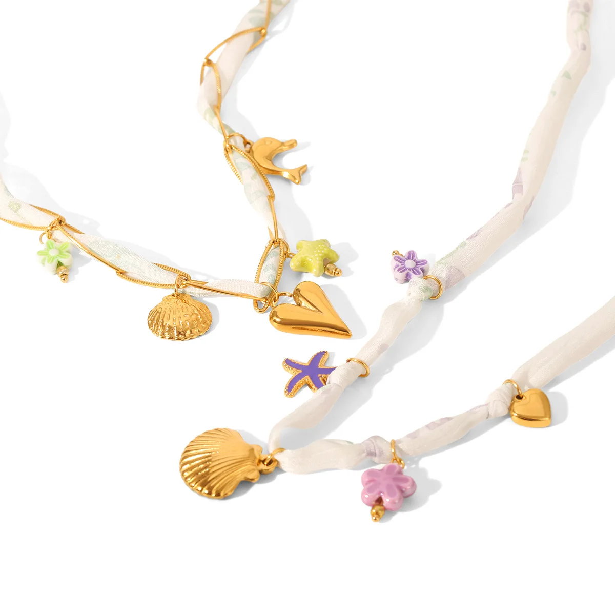 MW Bohemian Christian Party Style 18K Gold Plated Stainless Steel Shell Heart Colorful Flower Pendant Necklace
