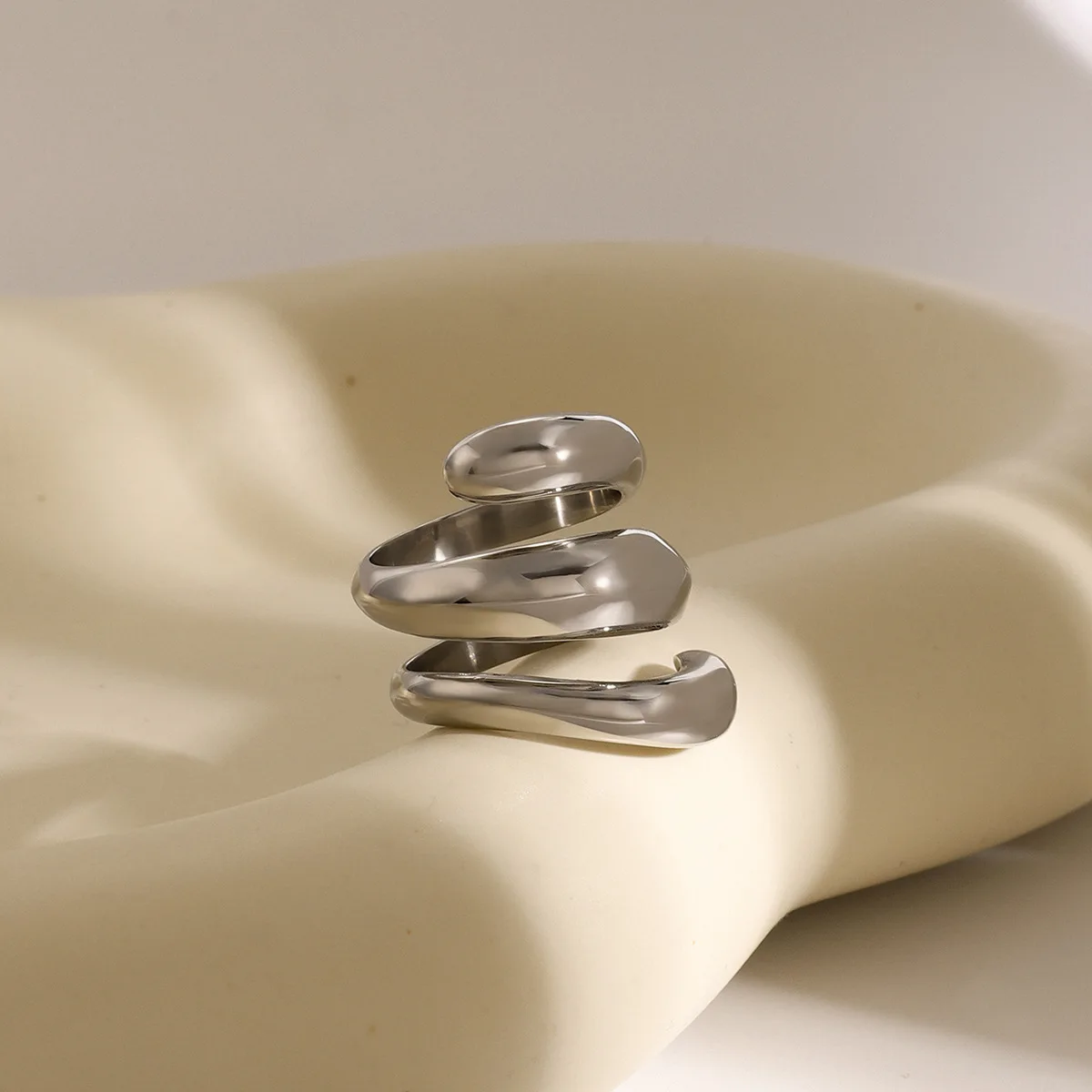 MW Women's Fashionable 18K Gold-Plated Stainless Steel Ring Polished Spring Triple-Layer Design, Luxury Niche Waterproof Jewelry