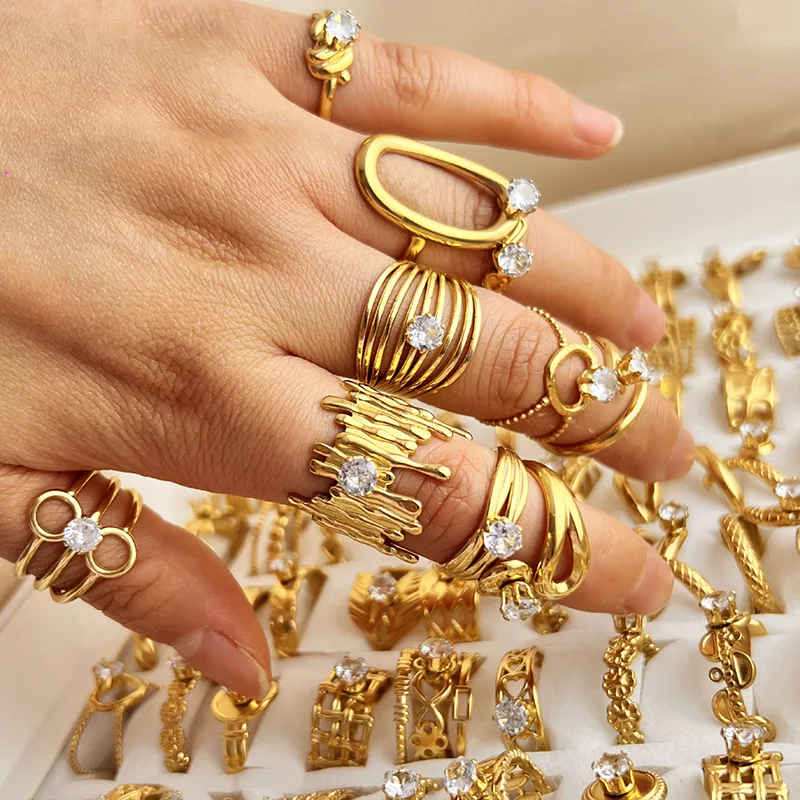 MW 18K Gold Plated Stainless Steel Open Rings Luxury Zircon Micro Setting Women's Fashion Rings Jewelry for Engagement Gift