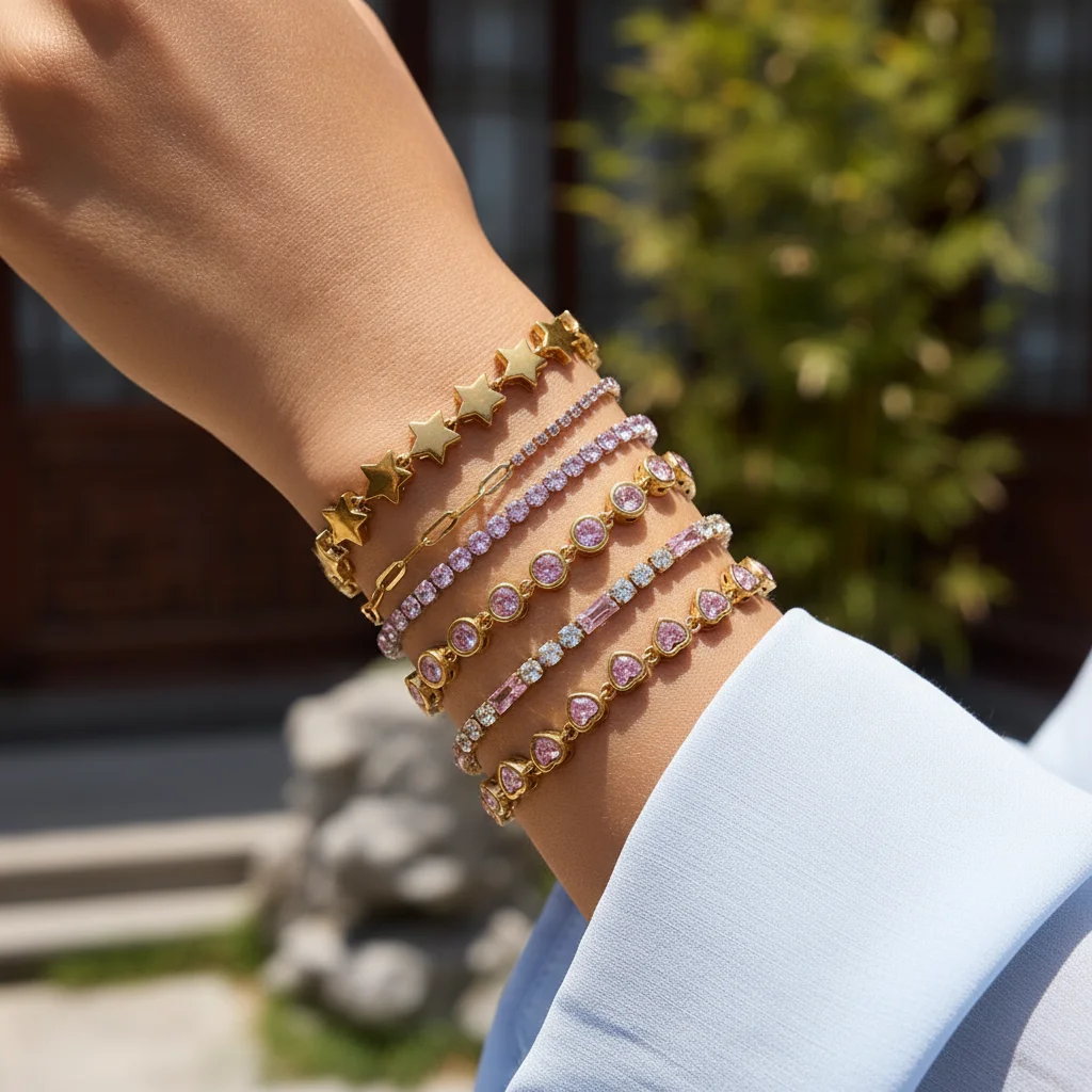 MW Geometry Zircon Link Chain Star Bracelet Heart Full Diamond Waterproof Layered Jewelry Stainless Steel Bracelet for Women