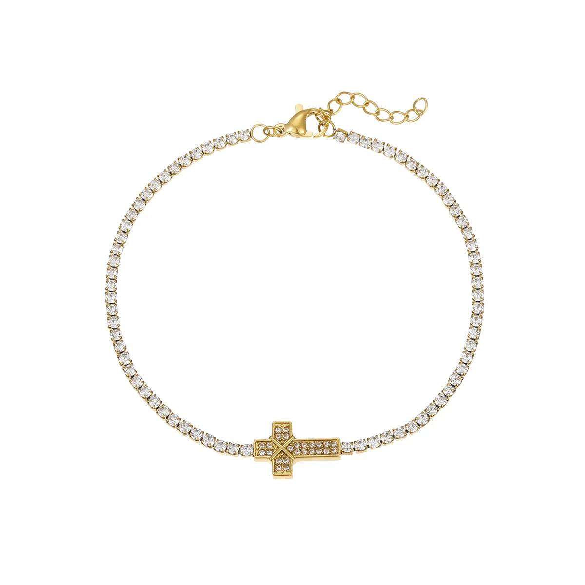 MW Micro-Inlaid Cubic Zirconia Stainless Steel Cross Chain Bracelet Hypoallergenic Romantic Party Tennis Chain Women Jewelry
