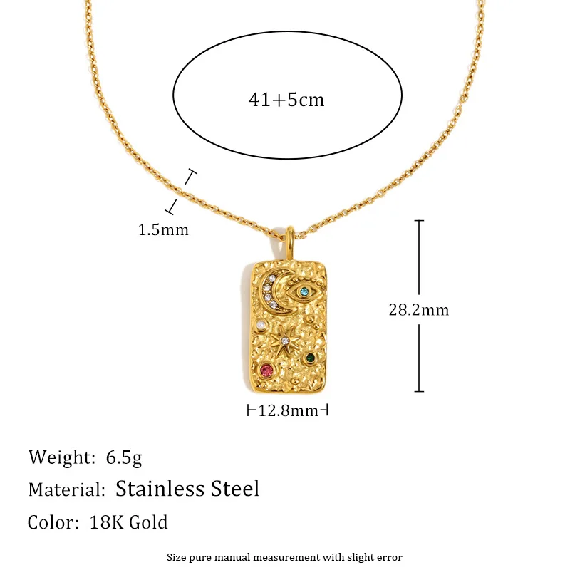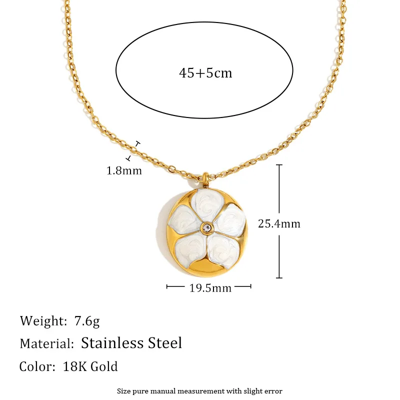 MW Women's Luxury Boho Chic Jewelry 18K Gold Plated Stainless Steel Link Chain with Stone Flower Heart Pendant Wholesale Bulk