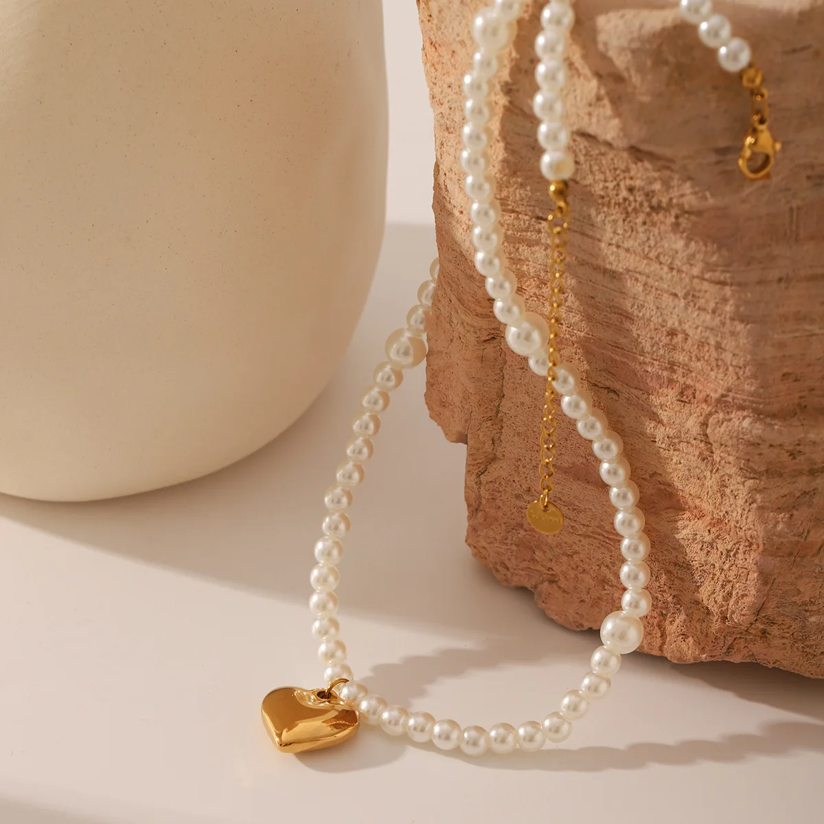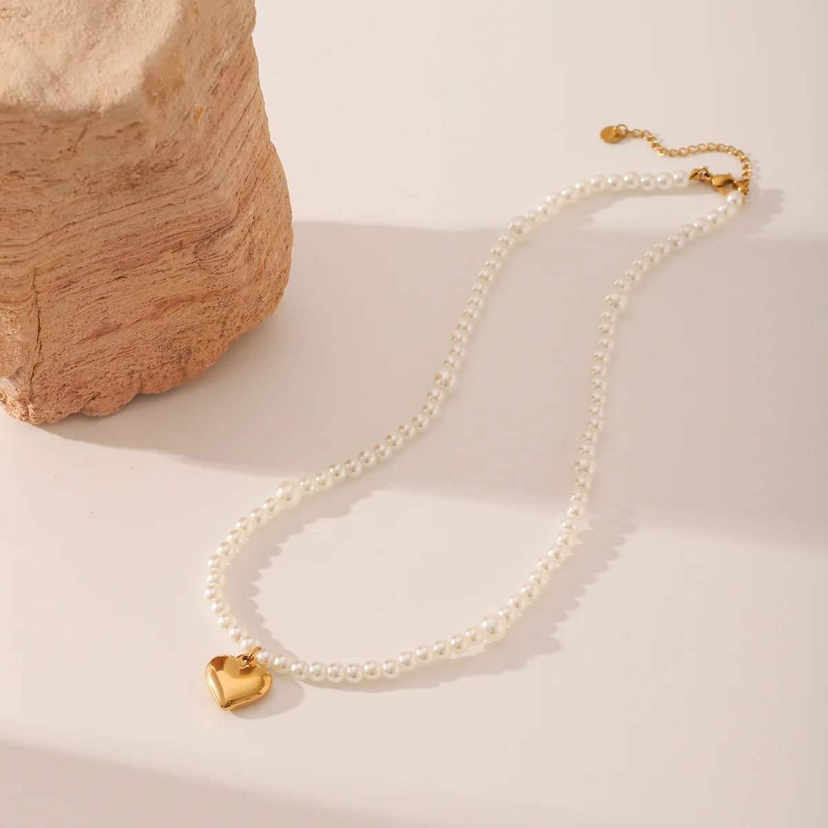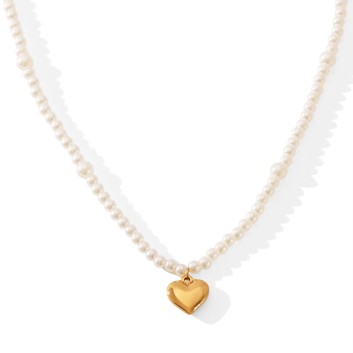 MW Dainty Freshwater Pearl Chocker Jewelry 18k Gold PVD Plated Stainless Steel Love Heart Pendant Necklace for Anniversary