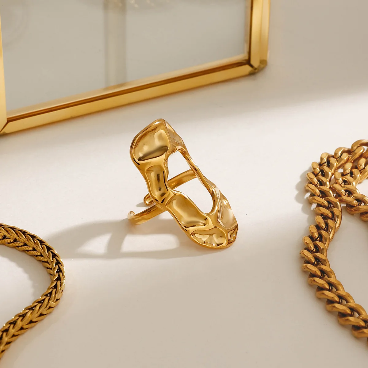 MW Women's Fashionable Irregular Oval Ring-18K Gold-Plated Stainless Steel Adjustable Bold Statement Daily Wear Jewelry Mirawell