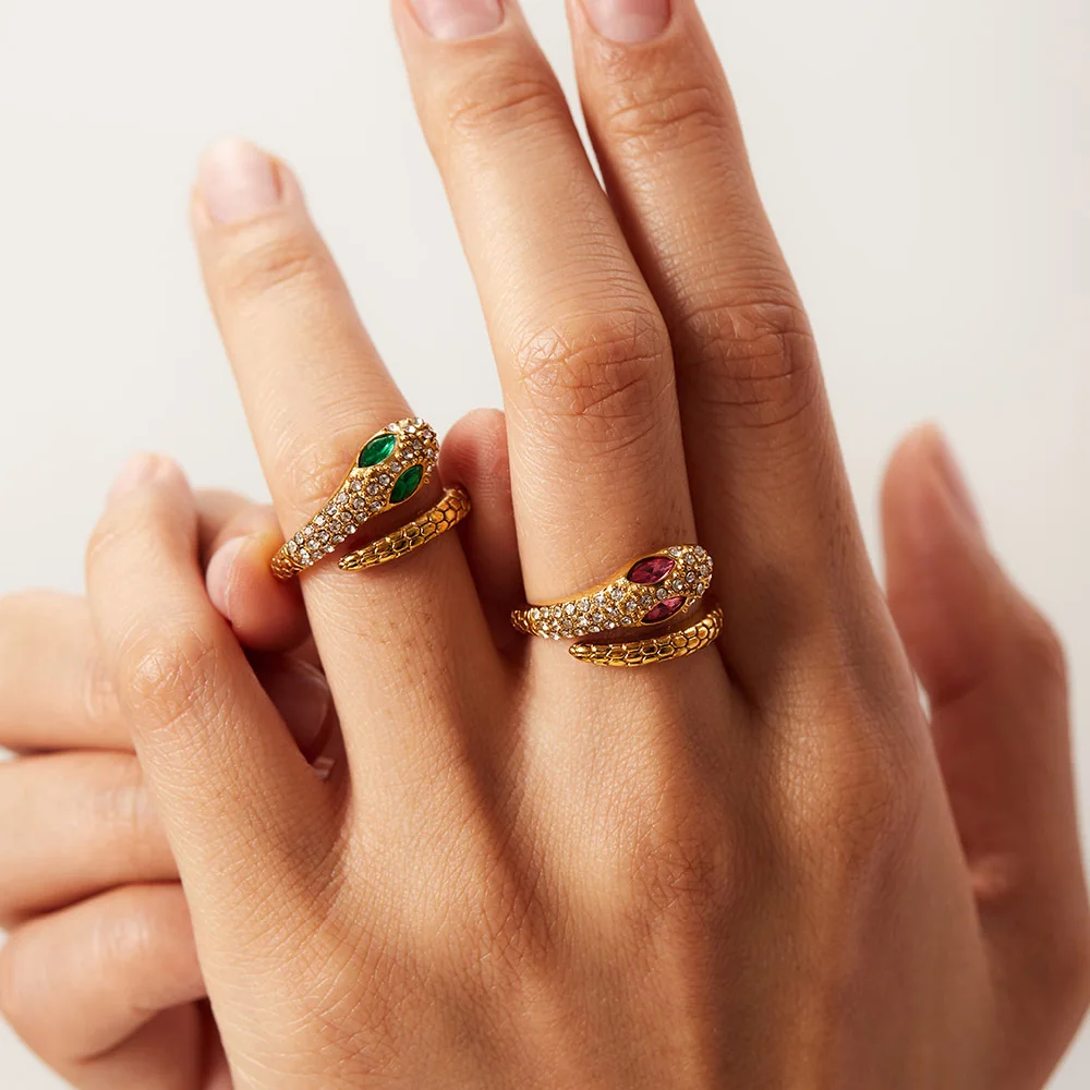 MW Women's 18K Gold-Plated Stainless Steel Ring with Classic and Unique Snake Design and Zircon Inlay, Open Style for Party