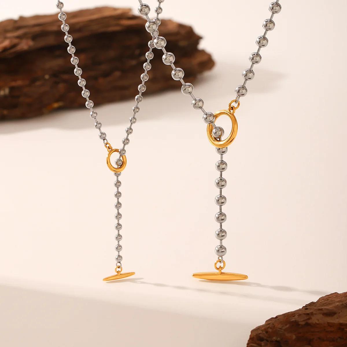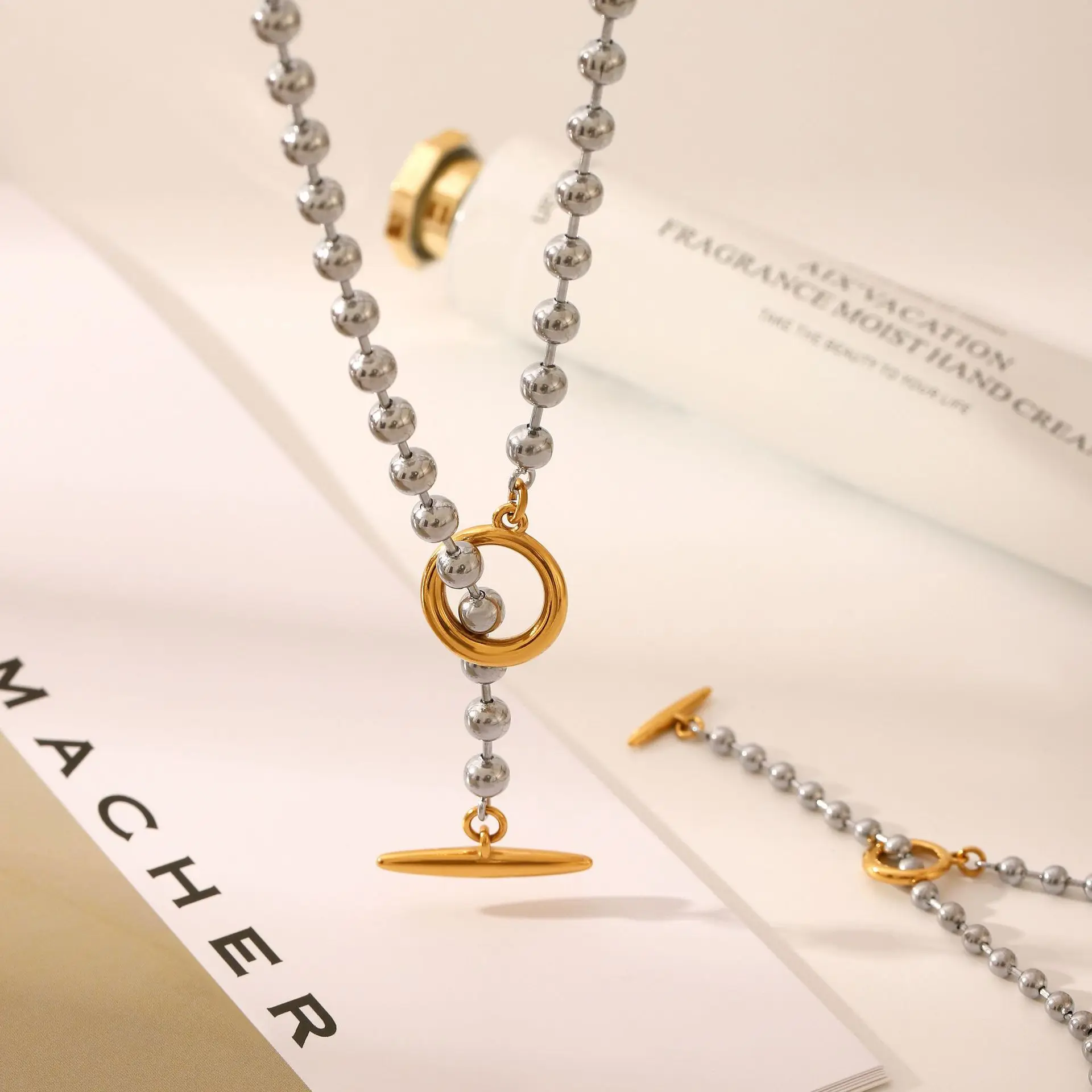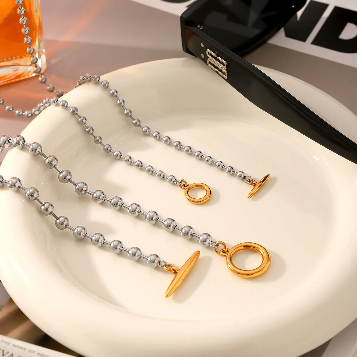 MW New Stainless Steel 18k Gold Plated Double Layer Chain Round Bead OT Buckle Design Waterproof Women Necklace Jewelry Gift
