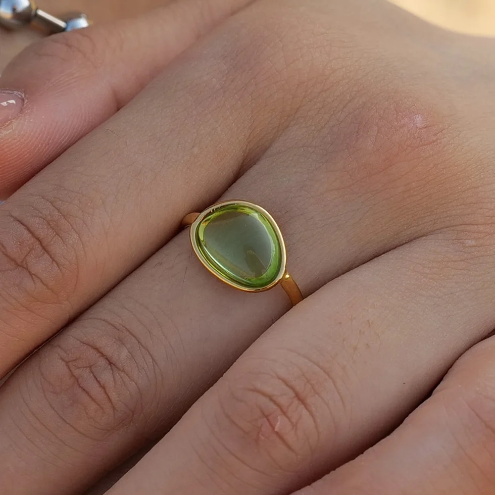 MW Women's Simple 18K Gold - Plated Stainless Steel Ring in Summer Fresh Style with Simple Jelly - like White and Green Colors