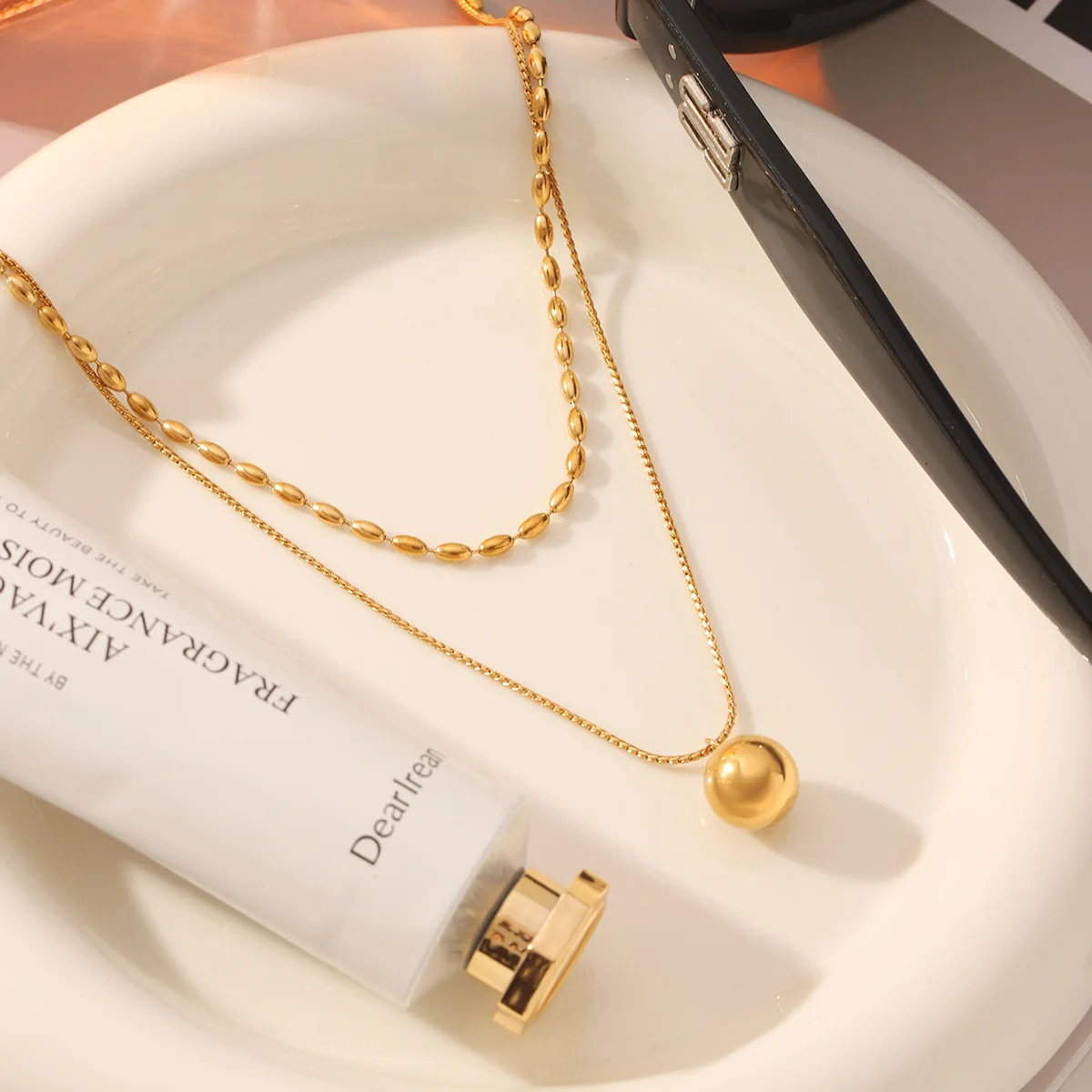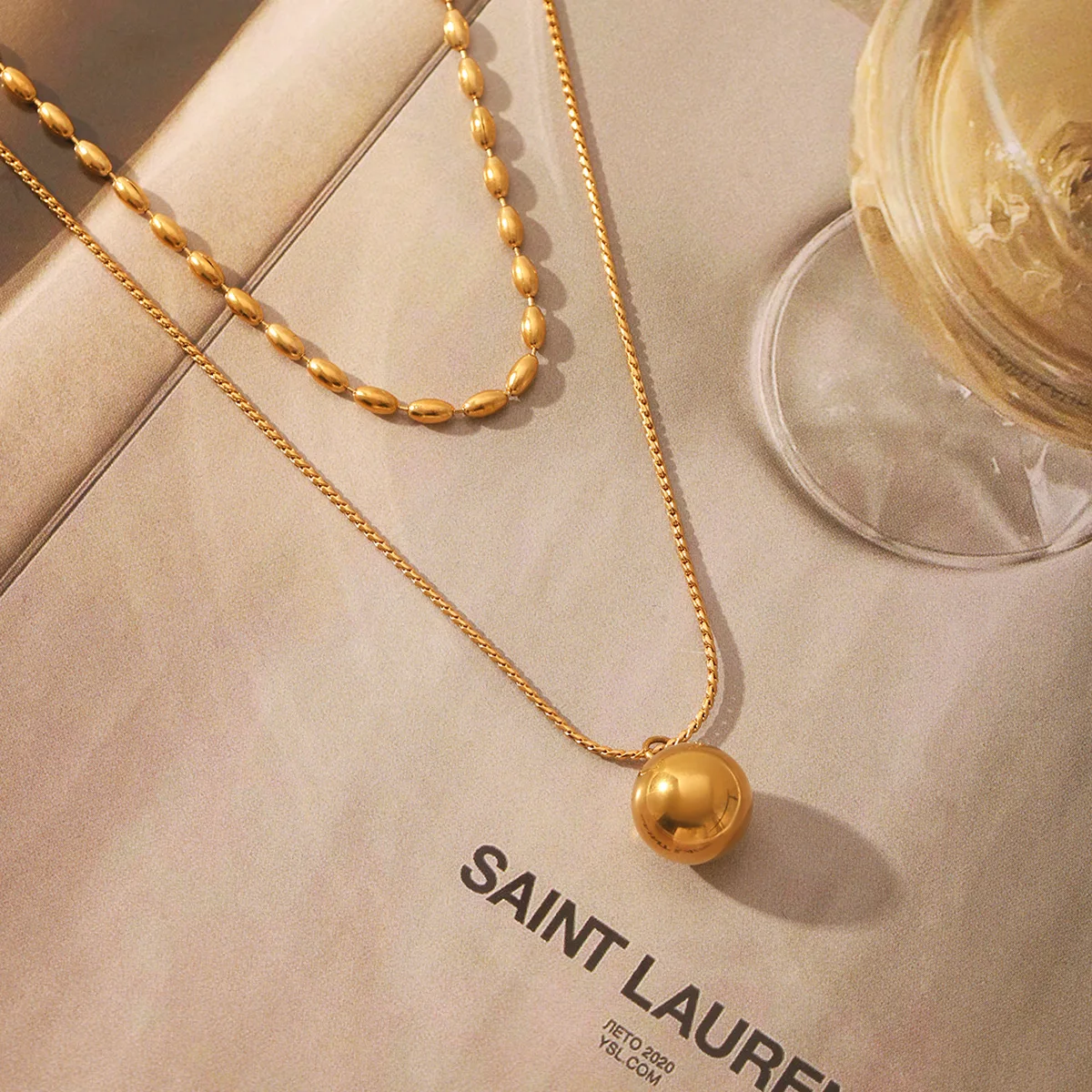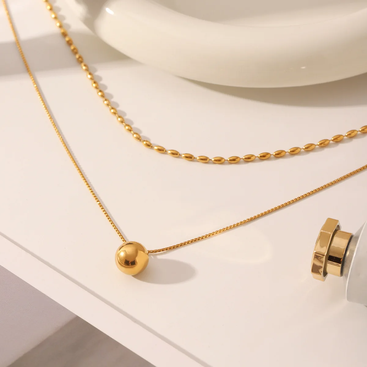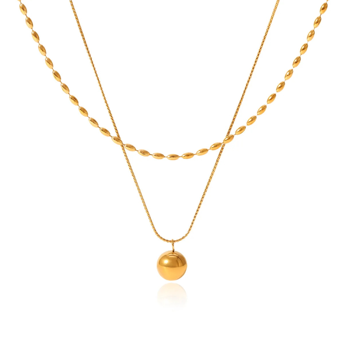 MW 18K Gold Plated Tarnish Free Waterproof Double-layer Dainty Beads String Stackable Stainless Steel Women's Minimalist Chains