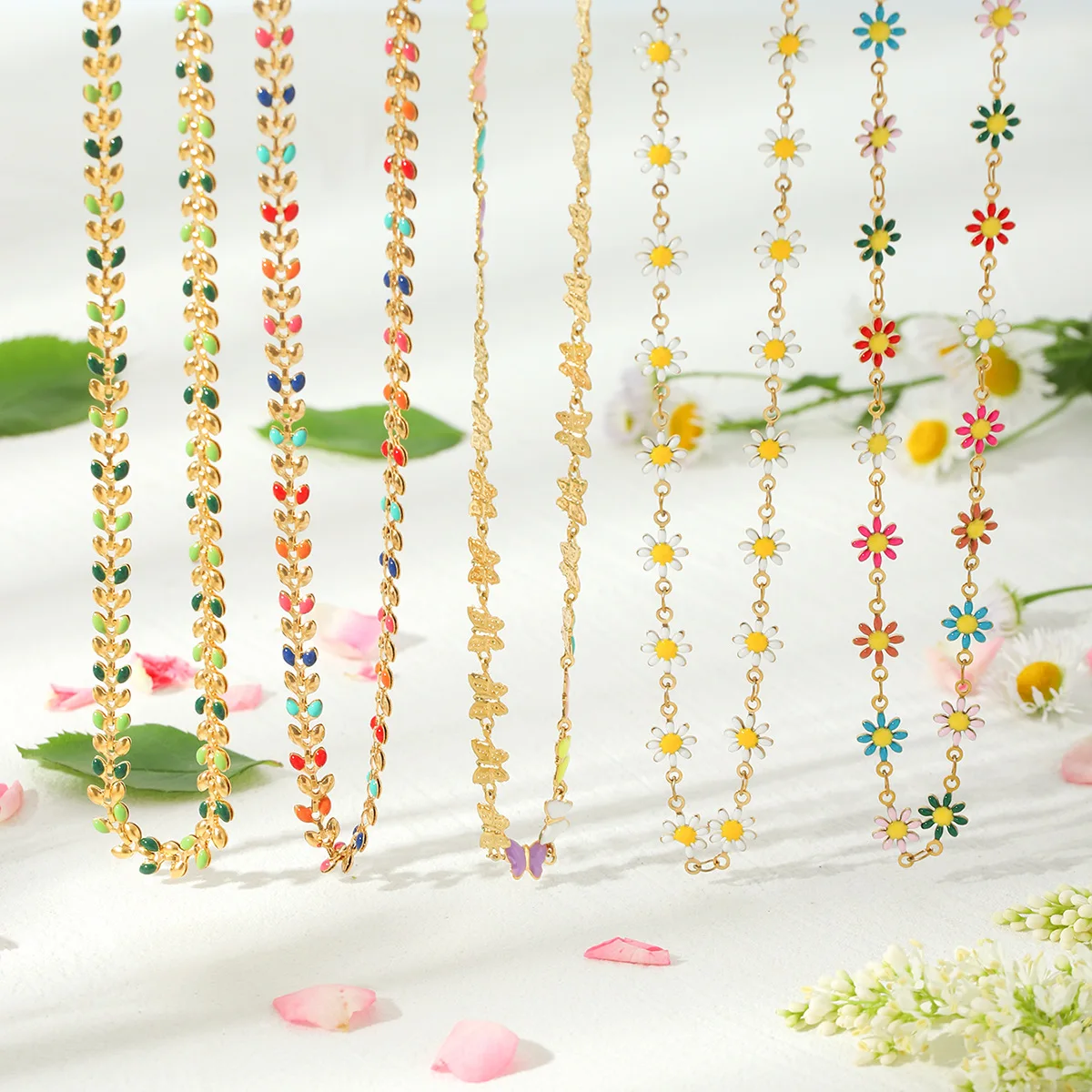 MW New Arrival 18K Gold Plated Flower Necklace Stainless Steel Jewelry Colorful Enamel Daisy Charm Chain Necklace for Women