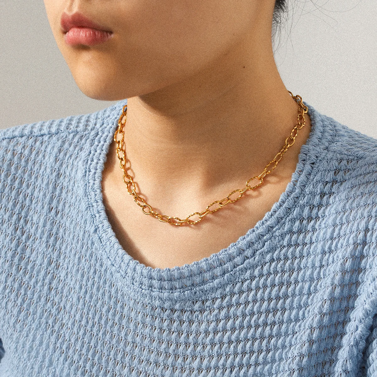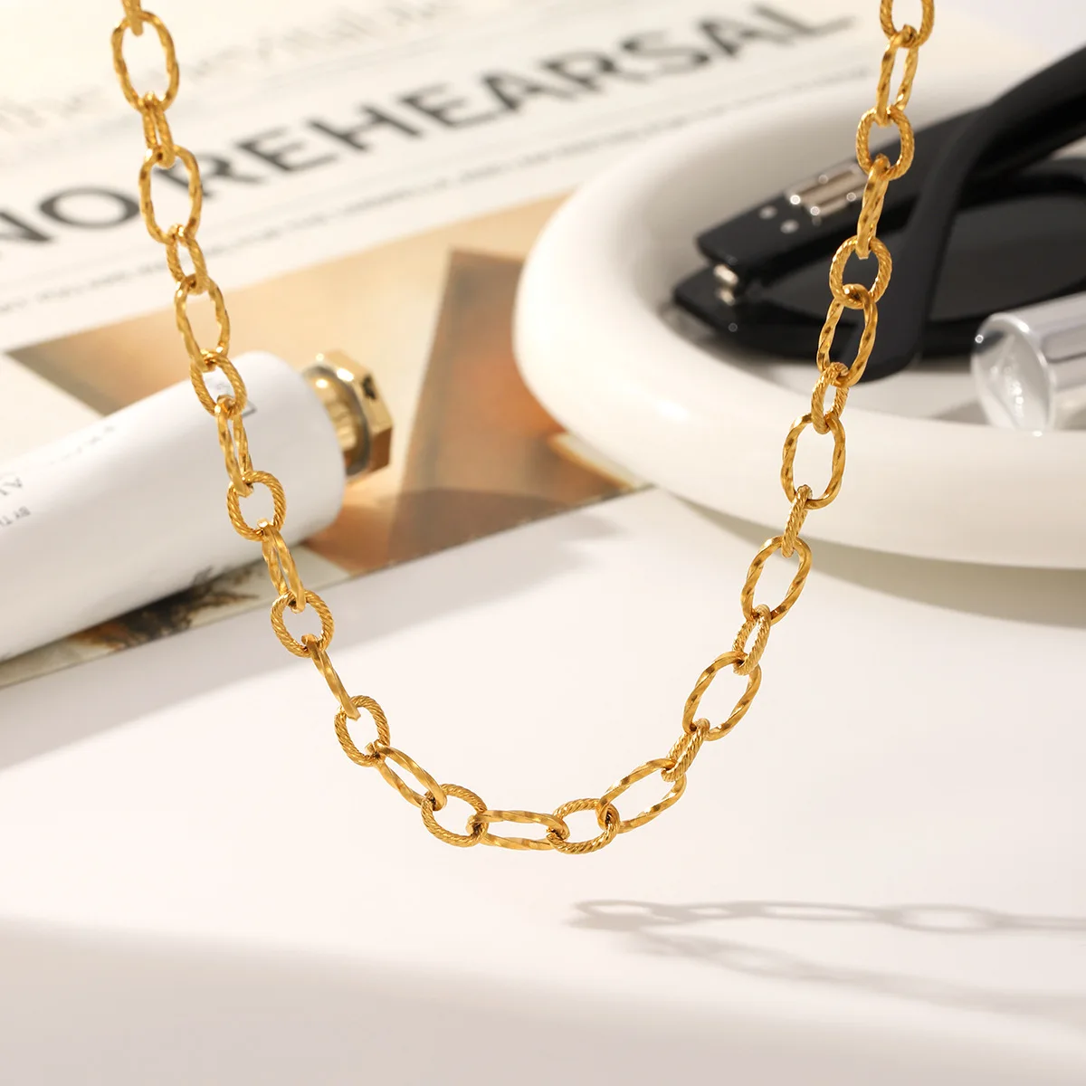 MW Wholesale 18K PVD Gold Plated Customized Jewelry Spiral Chain Necklace Stainless Steel Paper Clip Chain Necklace for Women