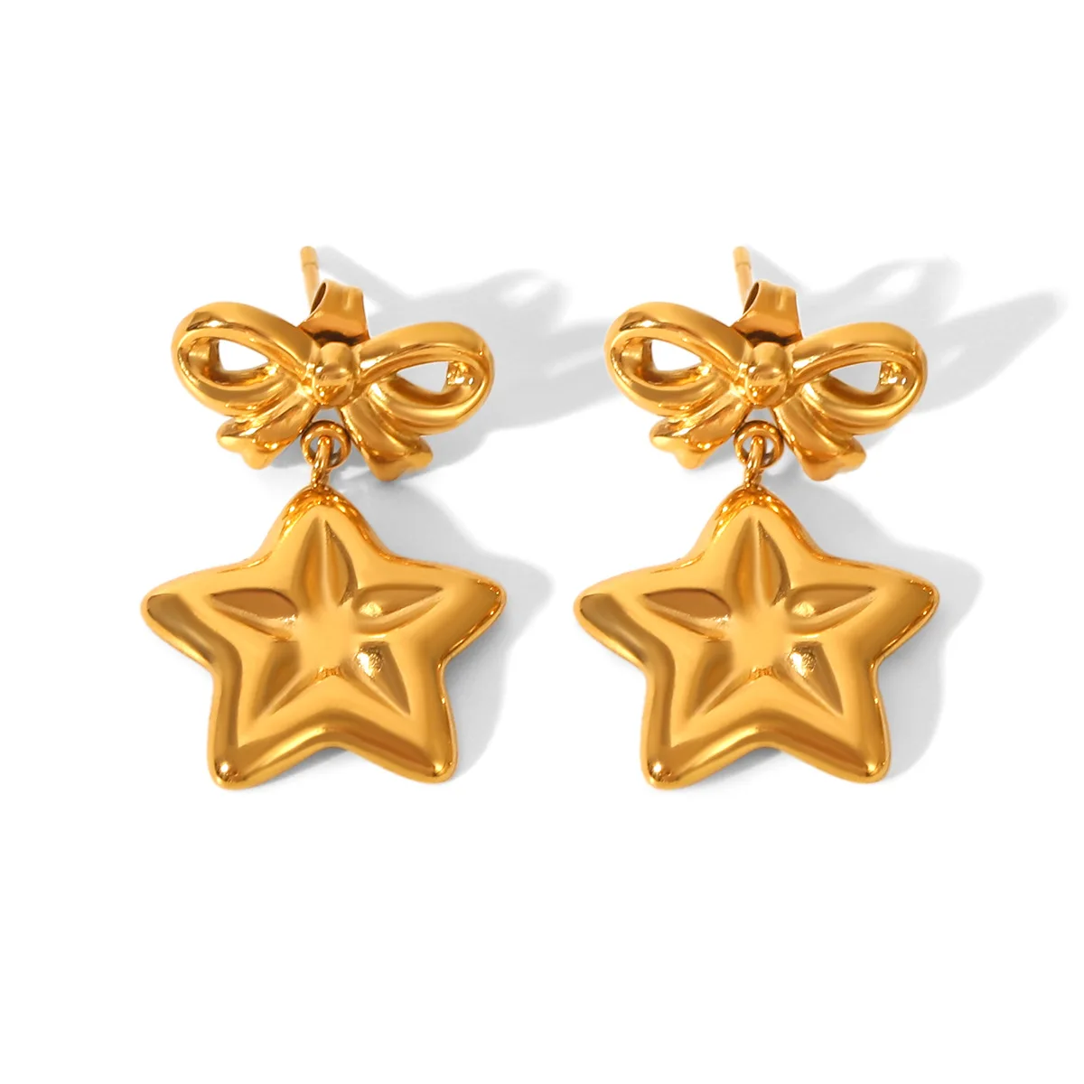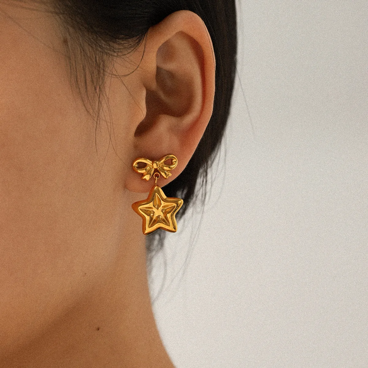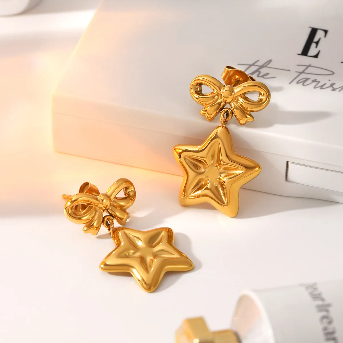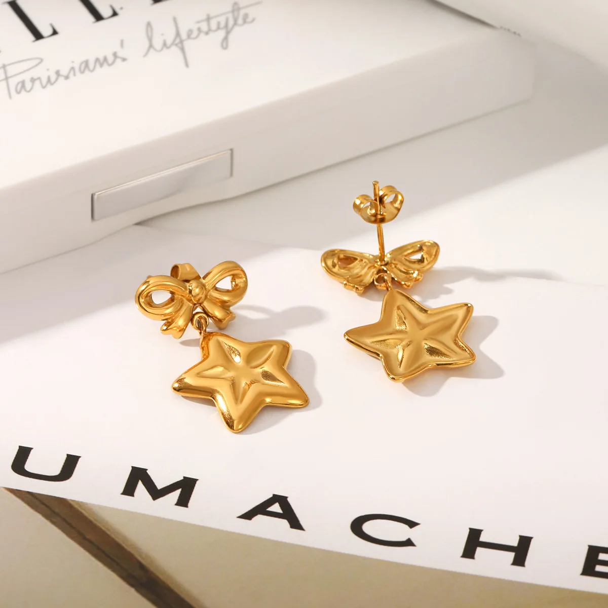 MW Cute 18K Gold Plated Spraying Pendant Stainless Steel Earrings Trendy Five Pointed Star Bowknot Drop Earrings Party Women's